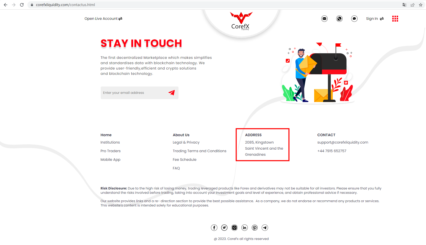 There is no any regulatory information on its website. This broker locates in Saint Vincent and the Grenadines, but we don't find any results on Financial Services Authority (FSA) of Saint Vincent and the Grenadines matching to Corefx Liquidity. The truth is that Corefx Liquidity is not under valid regulation by any regulators to do forex. Investors' funds in this broker are unsafe and cannot be protected by any law.