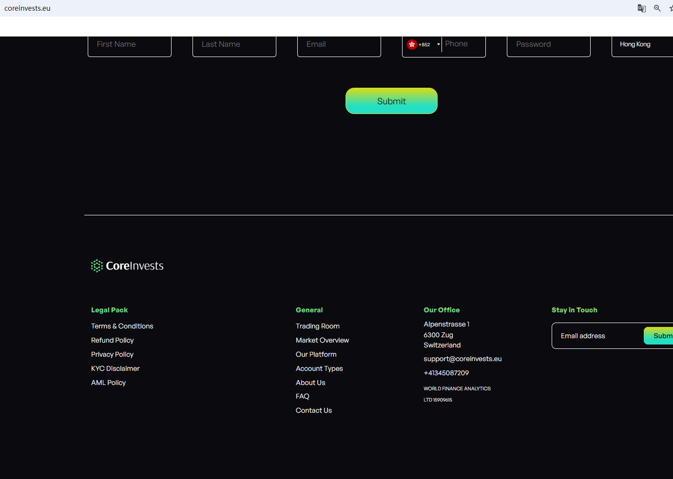 In essence, CoreInvests is not regulated by any governing body. Entrusting it with investors' funds is highly risky, as there are no legal protections in place to safeguard the funds. CoreInvests appears to be a scam.