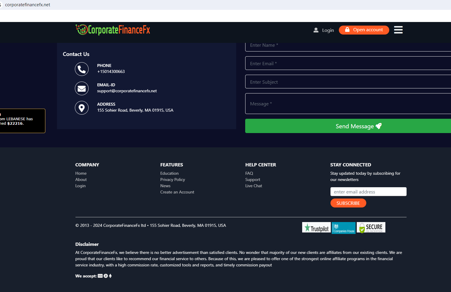 In essence, CorporateFinanceFx Ltd is not regulated by any governing body. Entrusting it with investors' funds is highly risky, as there are no legal protections in place to safeguard the funds.