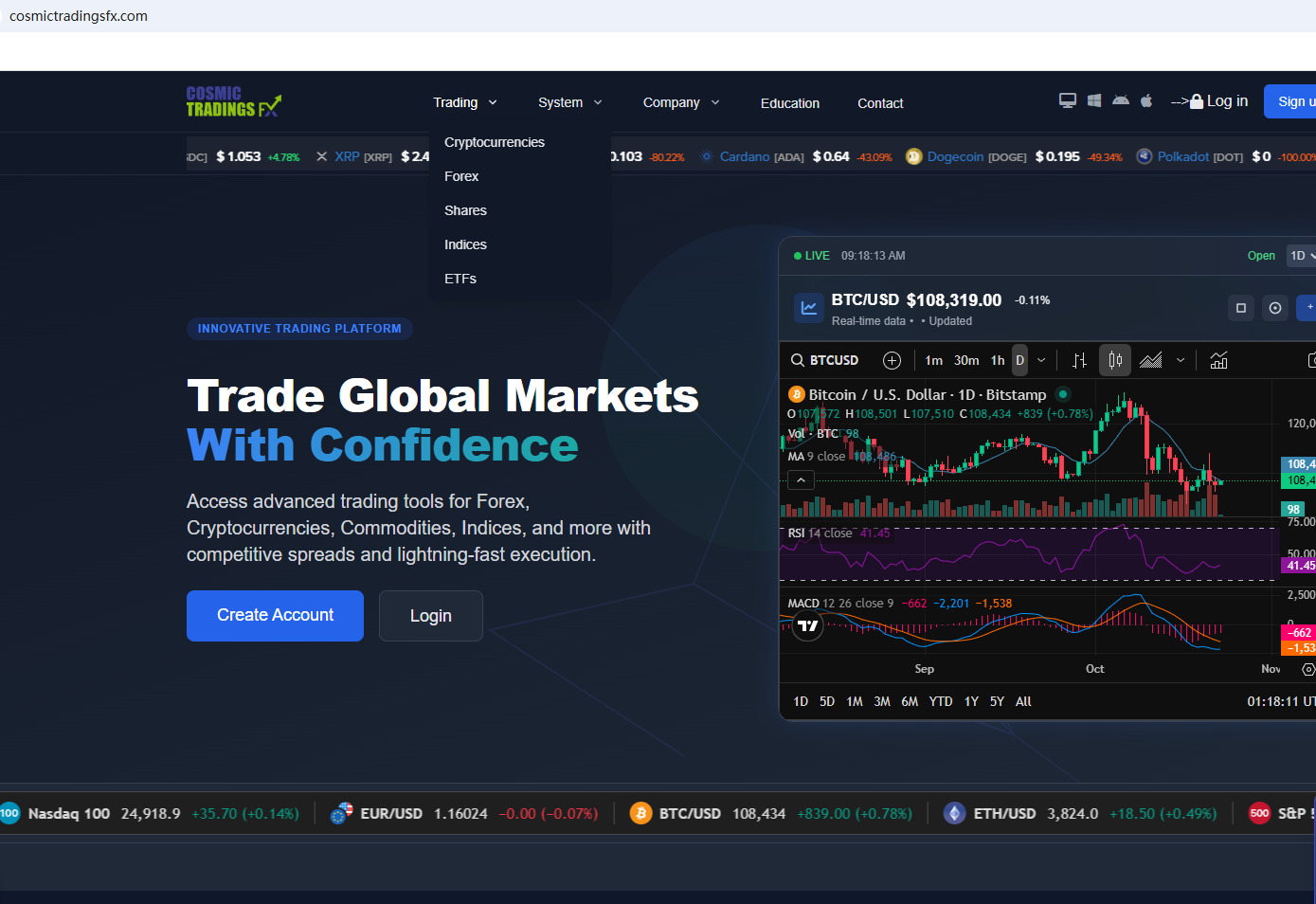 On Oct 15, 2025, the Financial Conduct Authority (FCA) issued a warning regarding Cosmic Tradings Fx, suspecting that this company may be offering financial services or products without the necessary authorization. https://www.fca.org.uk/news/warnings/cosmic-tradings-fx