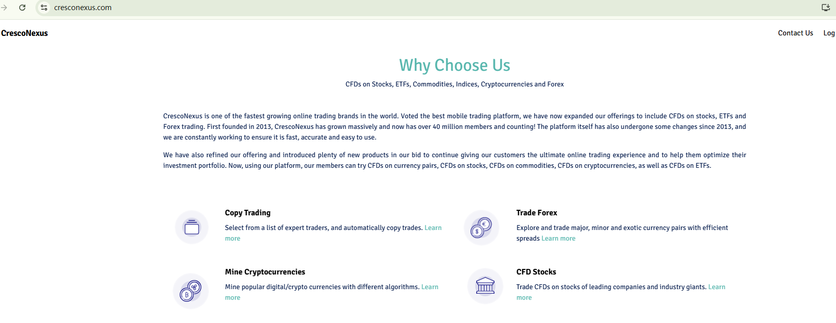 BrokersView found that the domain "https://cresconexus.com/" is currently inaccessible. This is widely regarded as a significant red flag, as the suspension of a broker's website often points to underlying regulatory or operational issues.