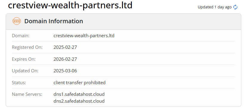In essence, Crestview Wealth Partners Ltd is not regulated by any governing body. Entrusting it with investors' funds is highly risky, as there are no legal protections in place to safeguard the funds. Crestview Wealth Partners Ltd appears to be a scam.