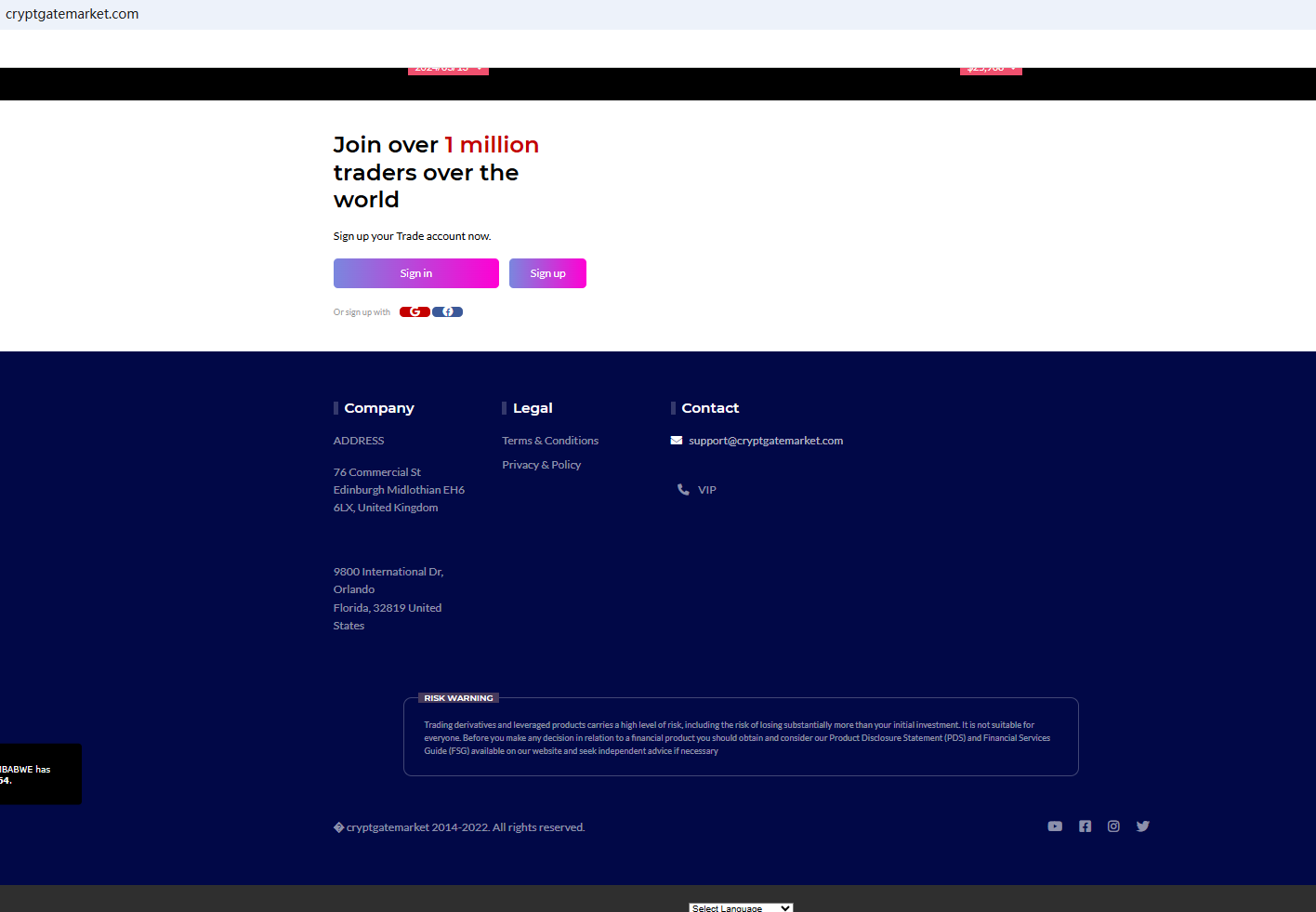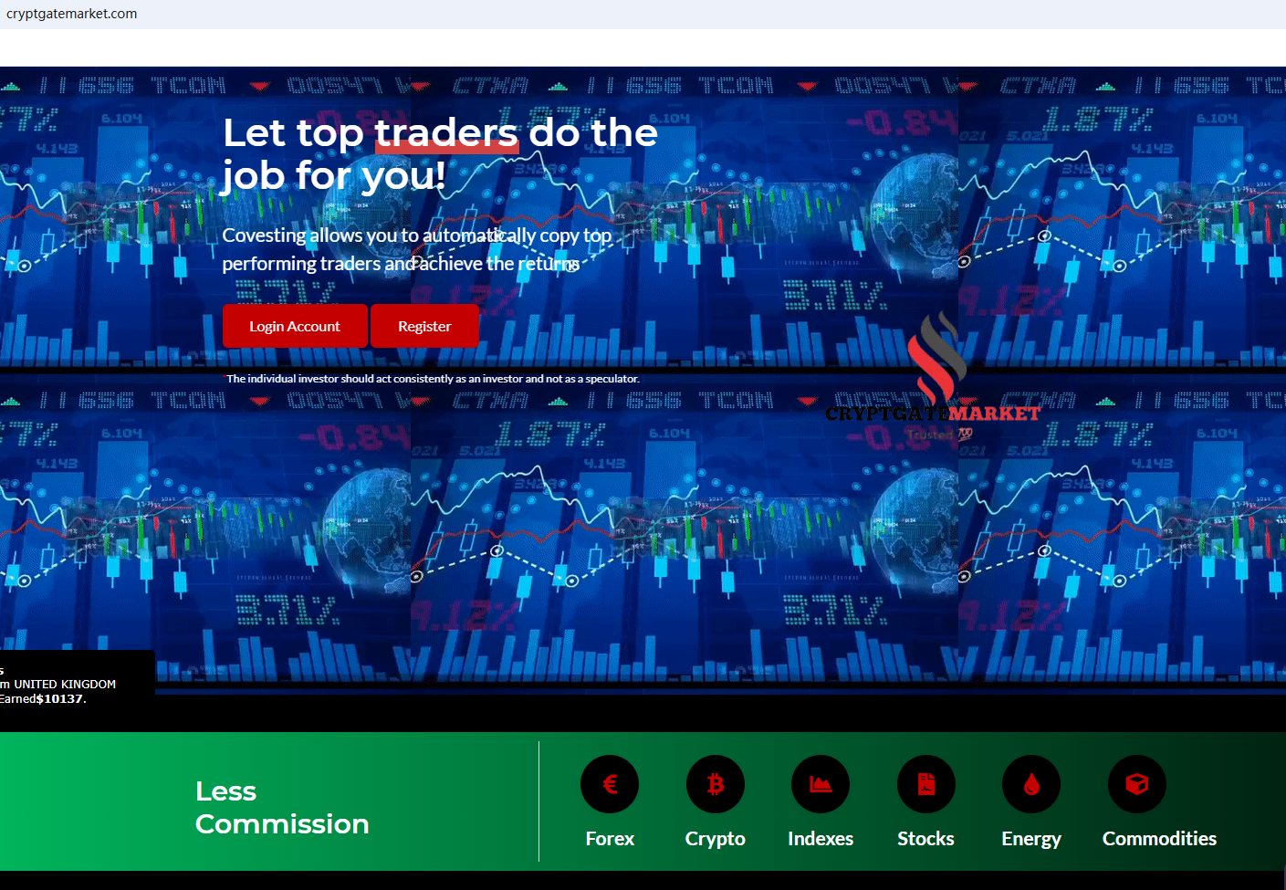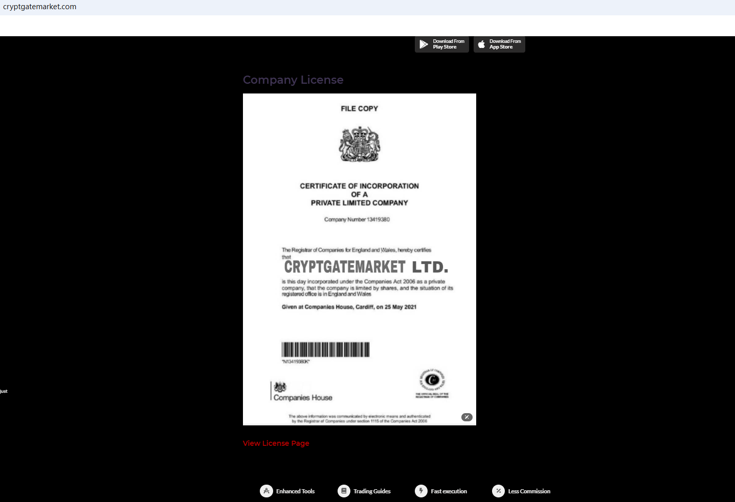 Its website displays a certificate from Companies House (CH). As we all know, CH is only a registered institution and does not have the right to regulate foreign exchange. Secondly, it shows that it has offices in the United States and the United Kingdom. After inquiry, we did not find matching information in the National Futures Association. What's more, the Financial Conduct Authority (FCA) issued a warning against CRYPTGATEMARKET LTD for the lack of the required authorization.