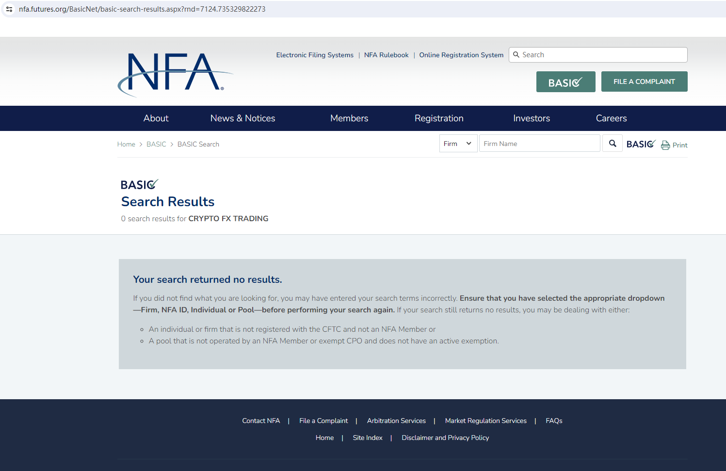 According to its website, it claims to be safe and reliable but does not display any regulatory information on its website. According to its address, it is located in the United States. Upon investigation, no matching information was found in the National Futures Association (NFA).