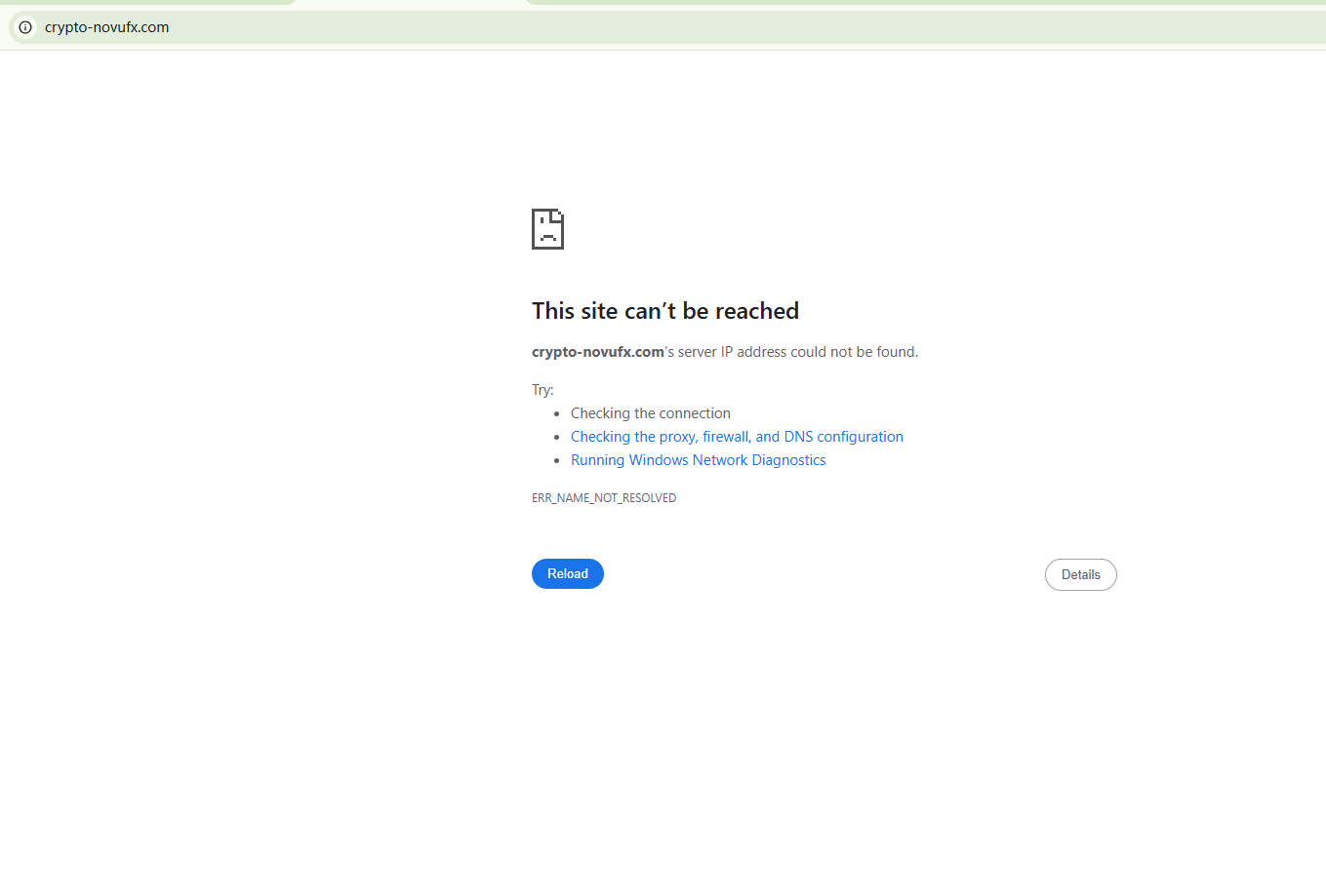 BrokersView found that the domain "https://crypto-novufx.com/" is currently inaccessible. This is widely regarded as a significant red flag, as the suspension of a broker's website often points to underlying regulatory or operational issues.