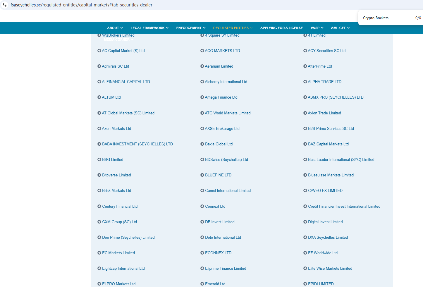 According to its website, it claims to be regulated by the Seychelles Financial Services Authority (Seychelles FSA) and the Cyprus Securities and Exchange Commission (CySEC). Upon investigation, no matching information was found in the Seychelles FSA and CySEC. In addition, the Financial Conduct Authority (FCA) issued a warning regarding Crypto Rockets, suspecting that this company may be offering financial services or products without the necessary authorization.