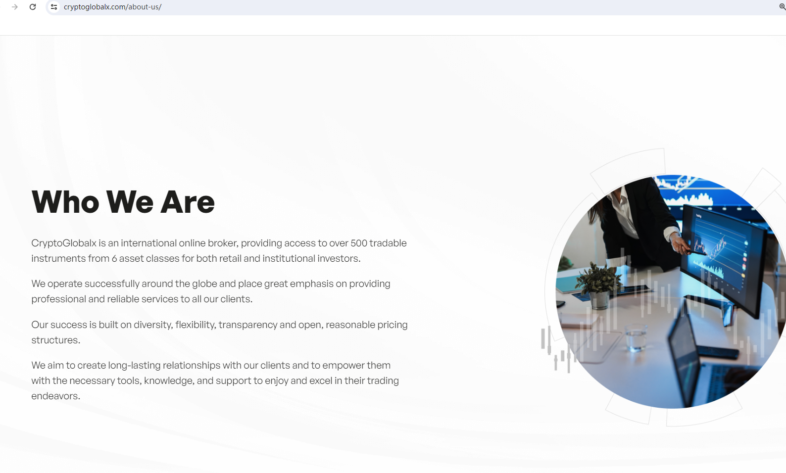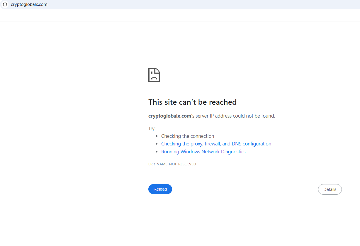 BrokersView found that the domain "https://cryptoglobalx.com/" is currently inaccessible. This is widely regarded as a significant red flag, as the suspension of a broker's website often points to underlying regulatory or operational issues.
