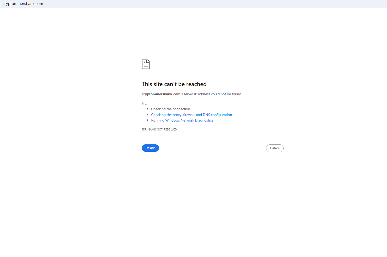 BrokersView found that the domain "cryptominersbank.com" is currently inaccessible. This is widely regarded as a significant red flag, as the suspension of a broker's website often points to underlying regulatory or operational issues.