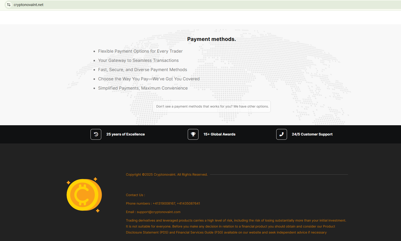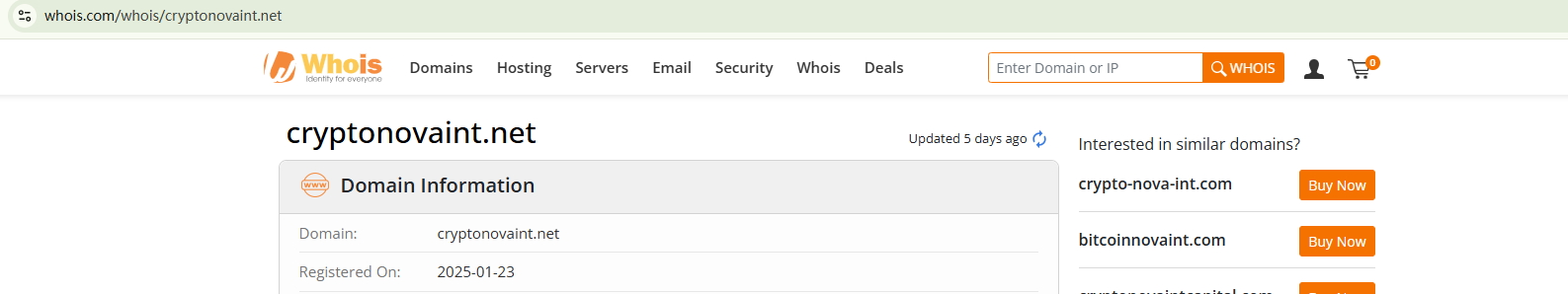 CryptoNovaInt seems to be a quite new website, with domain name just registered in January 2025. While the platform claims to be globally regulated, it doesn't provide any registration or licensing information to validate the regulatory statements. This is a red flag. The Federal Financial Supervisory Authority (BaFin) has investigated CryptoNovaInt and advised investors to stay away from this unauthorized platform.