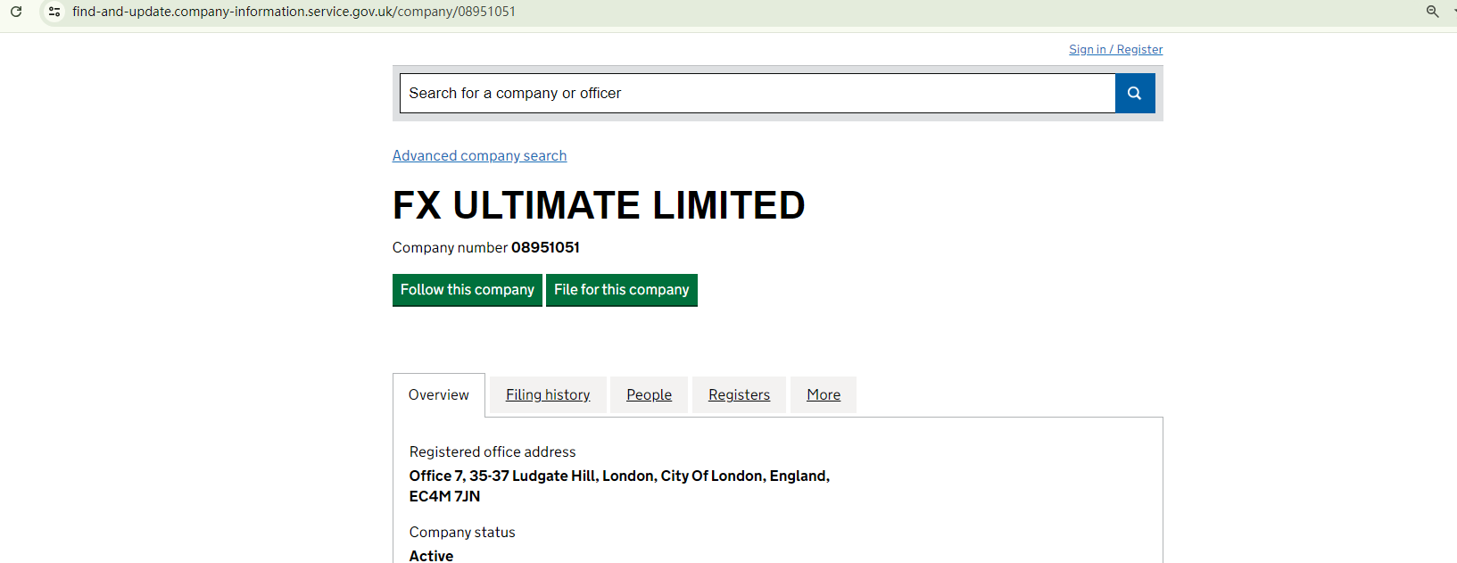 CRYPTOTECKY hastily created its website to appear professional, but even the logo is missing. The website includes a link labeled "Company Number" to suggest authenticity. This link directs to a specific page on Companies House (CH), pointing to a company called FX ULTIMATE LIMITED, which is registered in the UK. However, there is insufficient information to confirm any association between CRYPTOTECKY and this entity. Even if they were related, CRYPTOTECKY remains unlawful, as the UK's financial regulator, the Financial Conduct Authority (FCA), has flagged the website for lacking the required authorization. This is a significant warning sign.