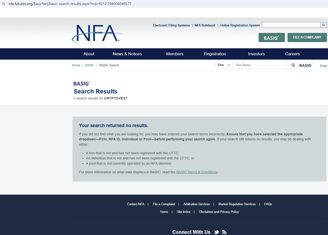 According to its website, it claims to be a licensed company, but it does not display any valid regulatory information on its website. Its office address is located in the United States, and a search revealed no matching information with the National Futures Association (NFA). In addition, the Australian Securities & Investments Commission (ASIC) issued a warning against Cryptovest, believing this company might be providing financial services or products without proper authorization.