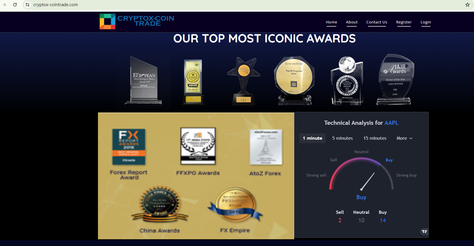 Secondly, it attempts to establish credibility through the use of exaggerated language and unverified awards. However, the domain name cryptox-cointrade.com was only registered in September 2023. It is highly unlikely for a broker to achieve significant reputation and accolades within such a short timeframe.