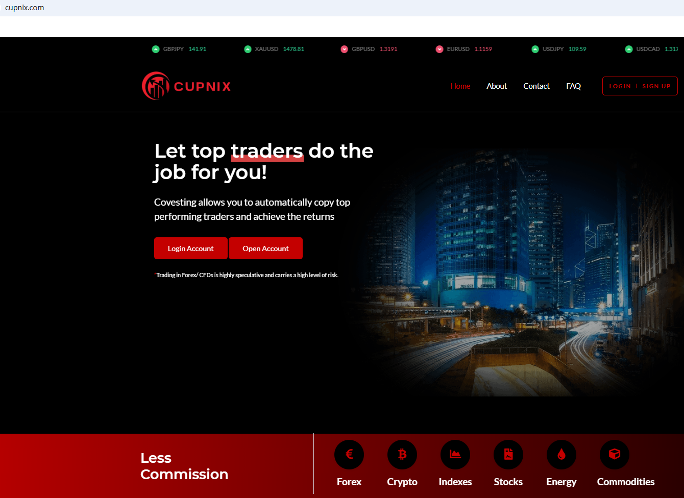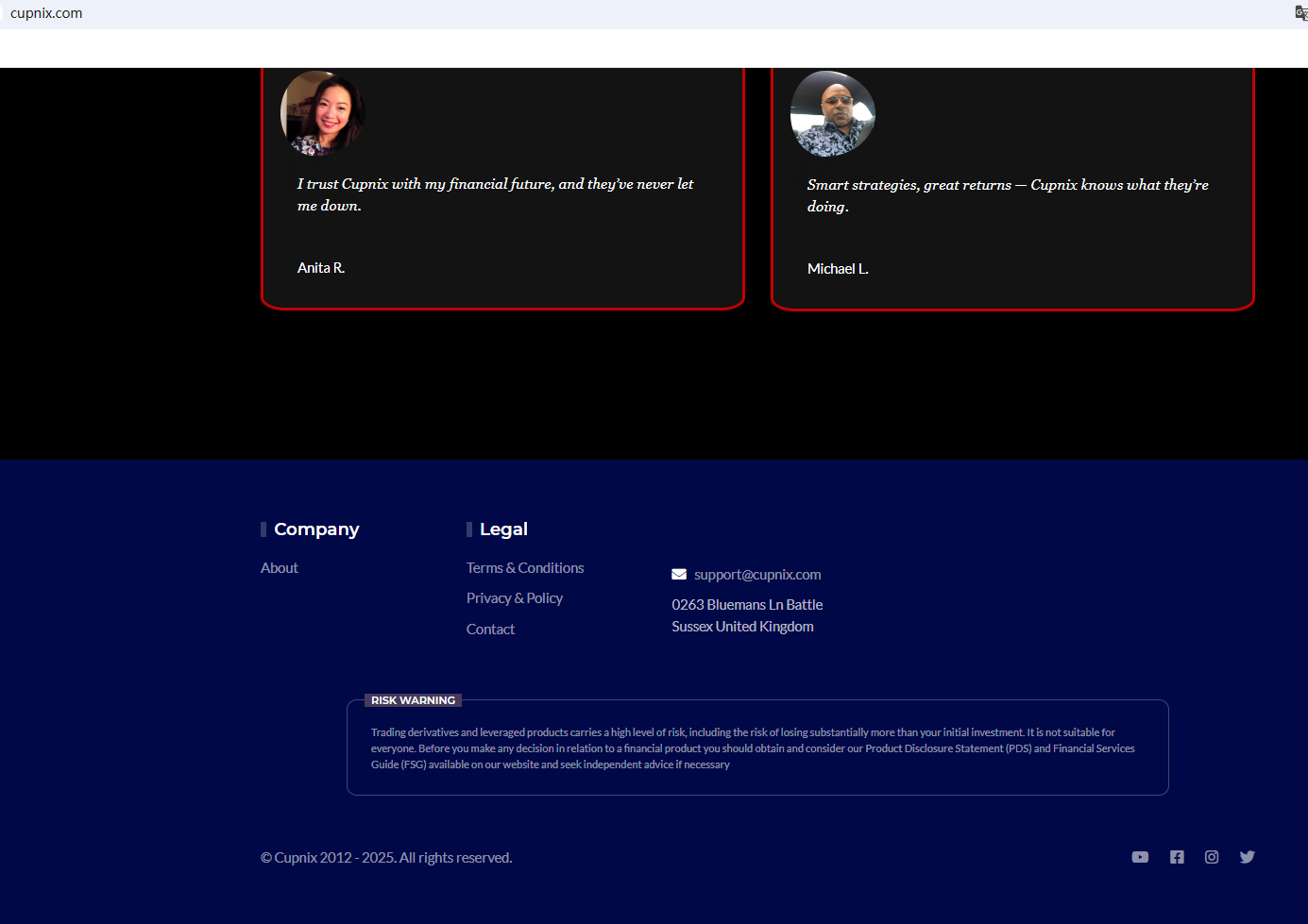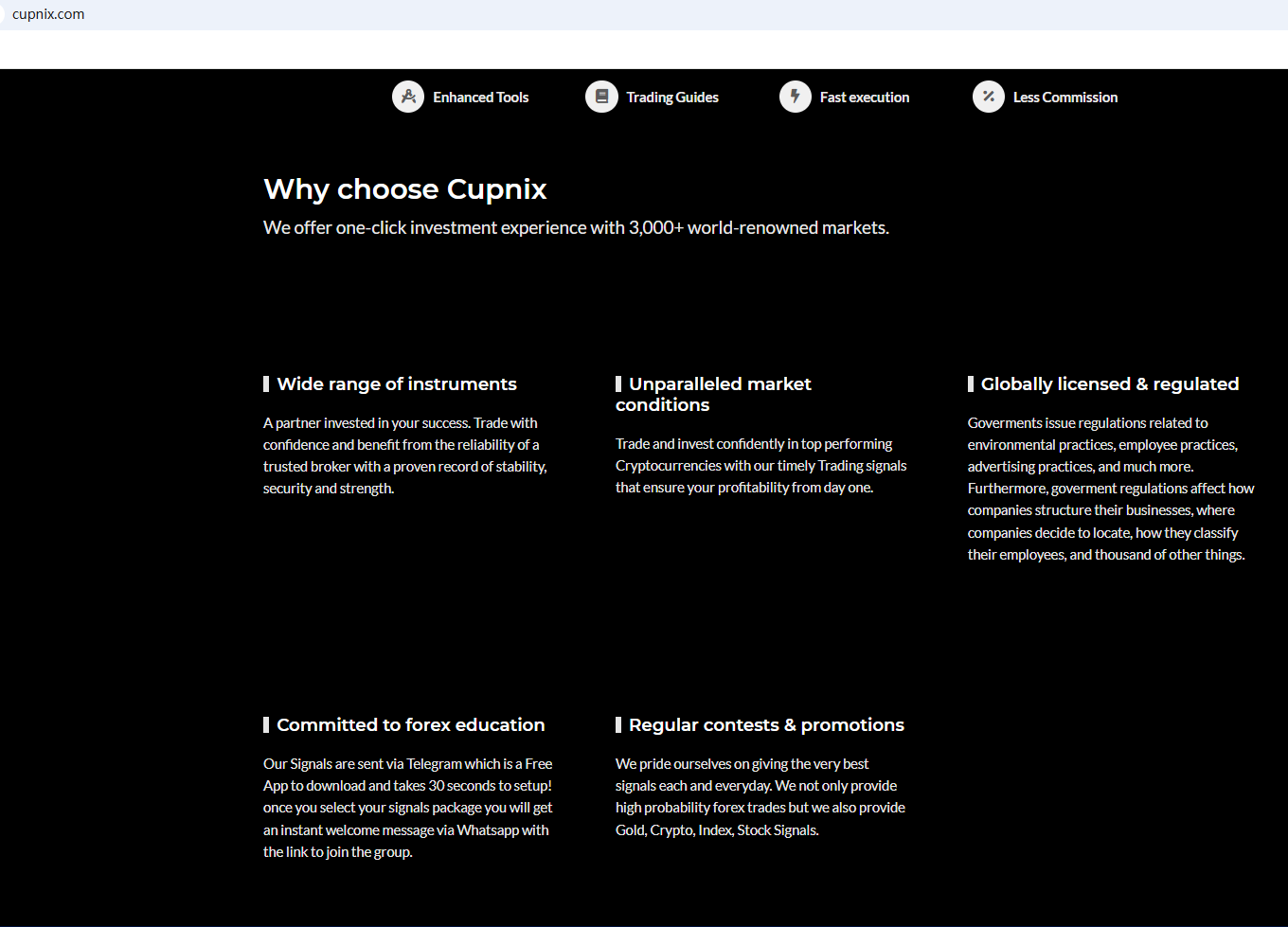 Cupnix is unregulated and offers no legal safeguards for investors' money. Cupnix appears to be a scam.