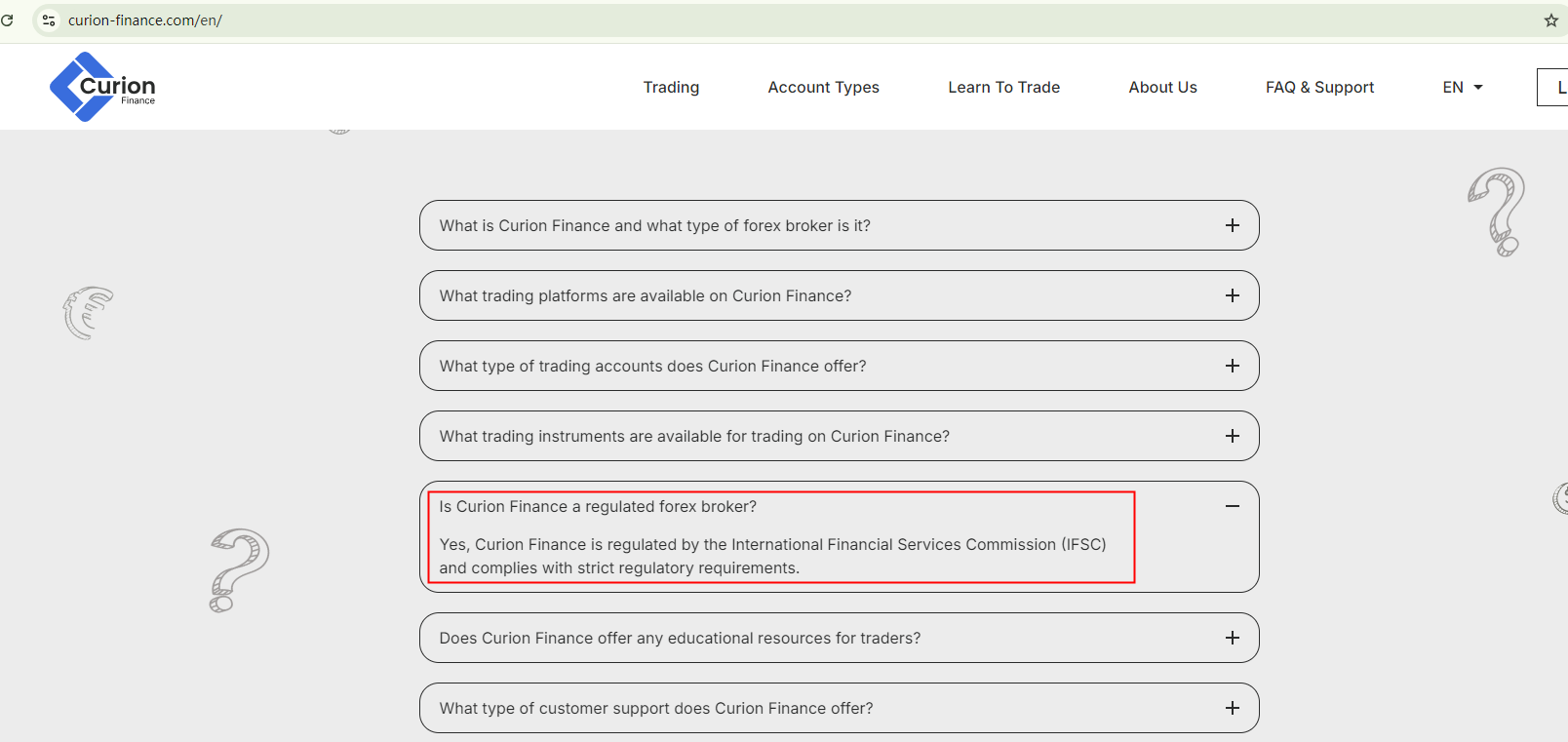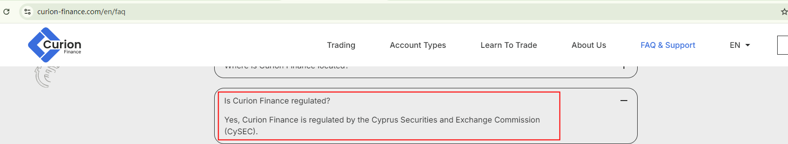 Curion Finance claims to be a regulated broker, but its regulatory statements are questionable. While it asserts regulation by the Cyprus Securities and Exchange Commission (CySEC) and the Belize Financial Services Commission (Belize FSC), we have not found corresponding records in the registers of these regulators.