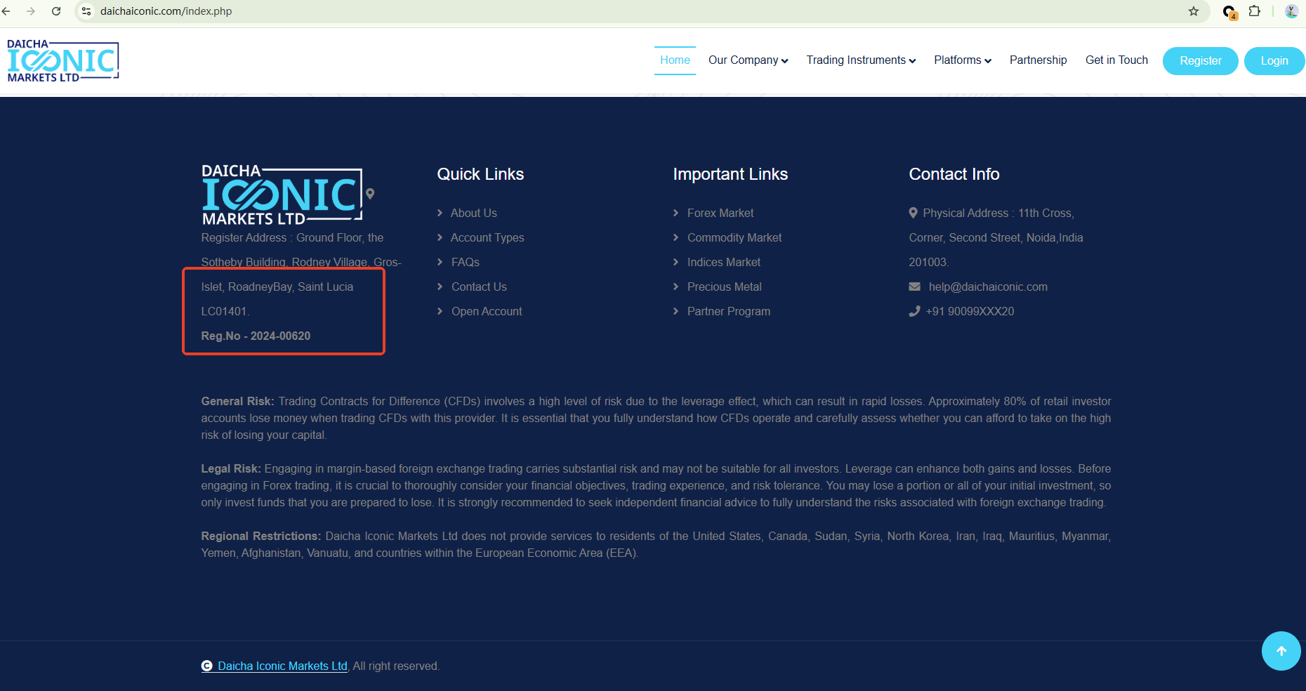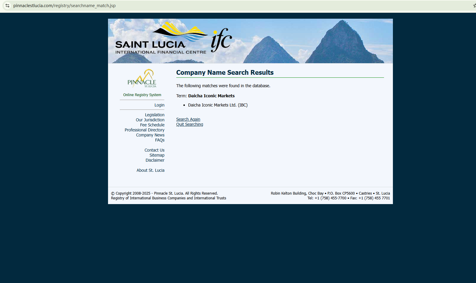 The platform claims to be registered in Saint Lucia, and while a matching company name was found in the Saint Lucia International Financial Centre (IFC) registry, this only confirms it holds International Business Company (IBC) status, not a valid financial license. The Saint Lucia IFC does not regulate forex trading. Additionally, the platform lists a physical address in India, a country that lacks an official regulatory body overseeing forex trading. These factors raise serious concerns that the platform may be operating without proper authorization and could potentially be fraudulent.