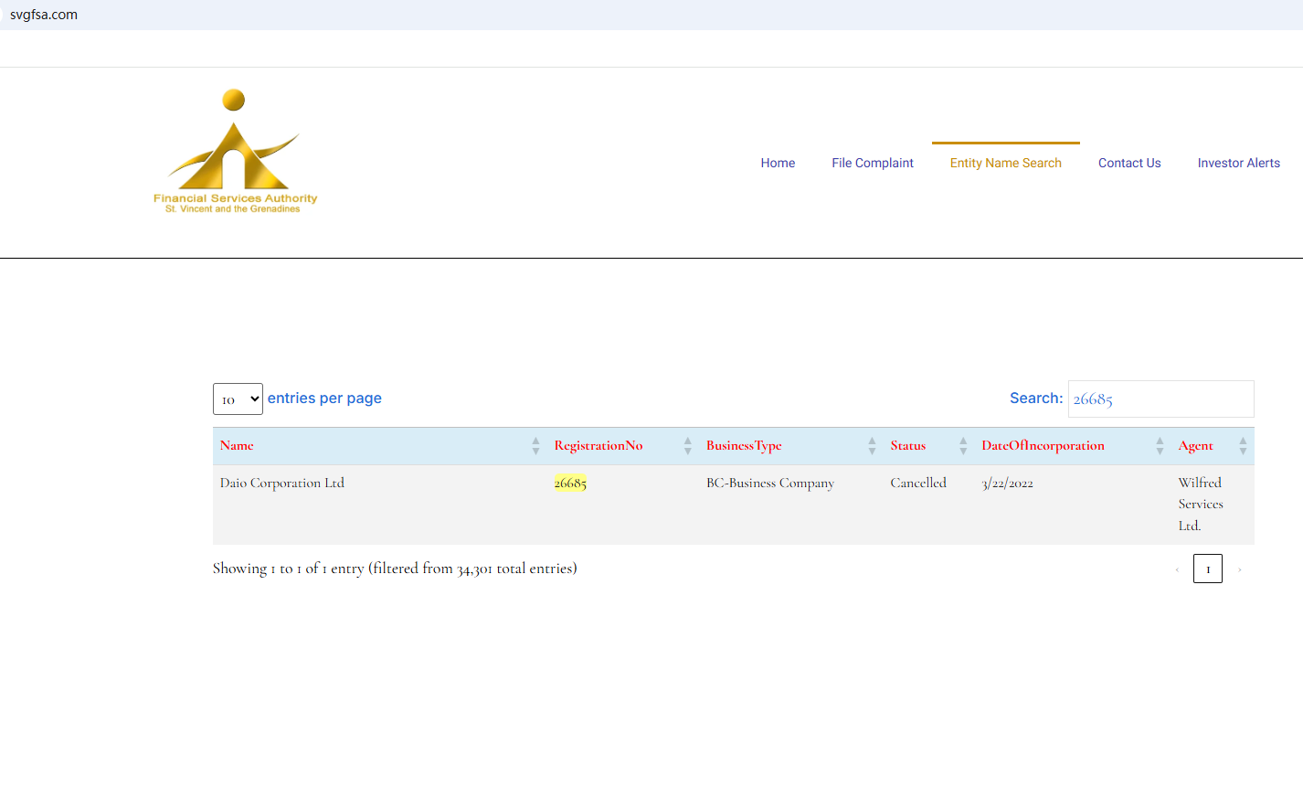 The website of Daio is currently unavailable. The claimed registration with the Financial Services Authority of St. Vincent and The Grenadines (SVG FSA) has been cancelled as well. All the signs indicate substantial risks of Daio. Investors should be informed about the development and stay clear of it.