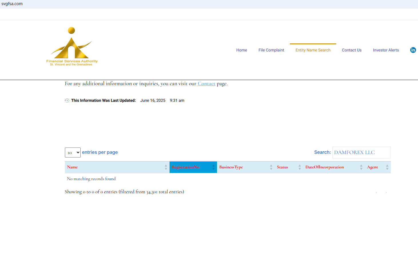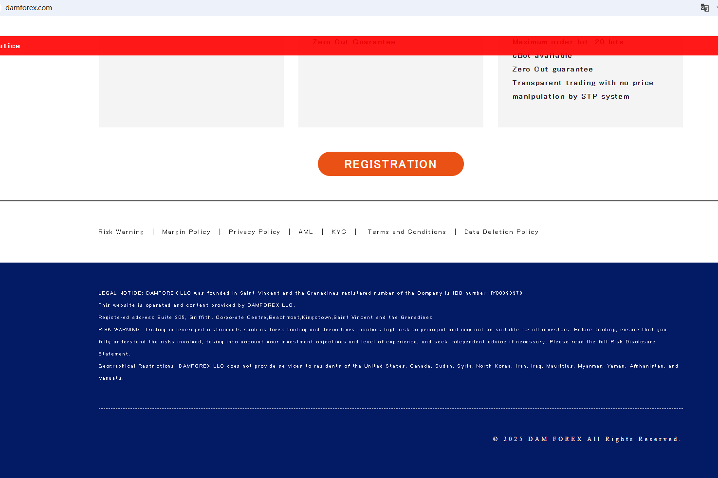 It claims to be established and registered in St. Vincent, but upon investigation, no matching information was found in the Financial Services Authority of St. Vincent and The Grenadines (SVG FSA). In addition, the previously claimed the MWALI INTERNATIONAL SERVICES AUTHORITY (MISA) supervision no longer exists. All the signs indicate substantial risks of DAM FOREX. Investors should be informed about the development and stay clear of it.