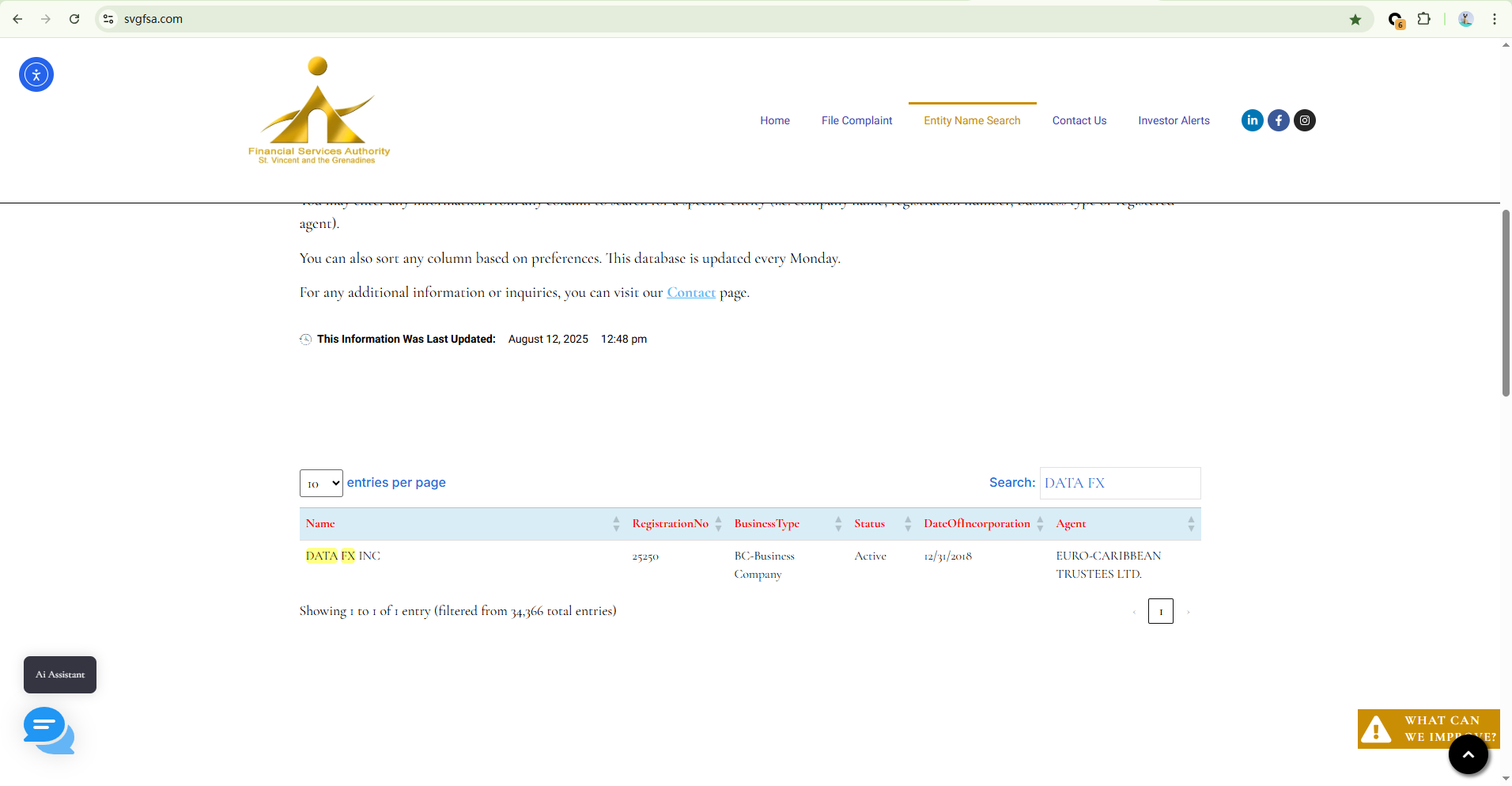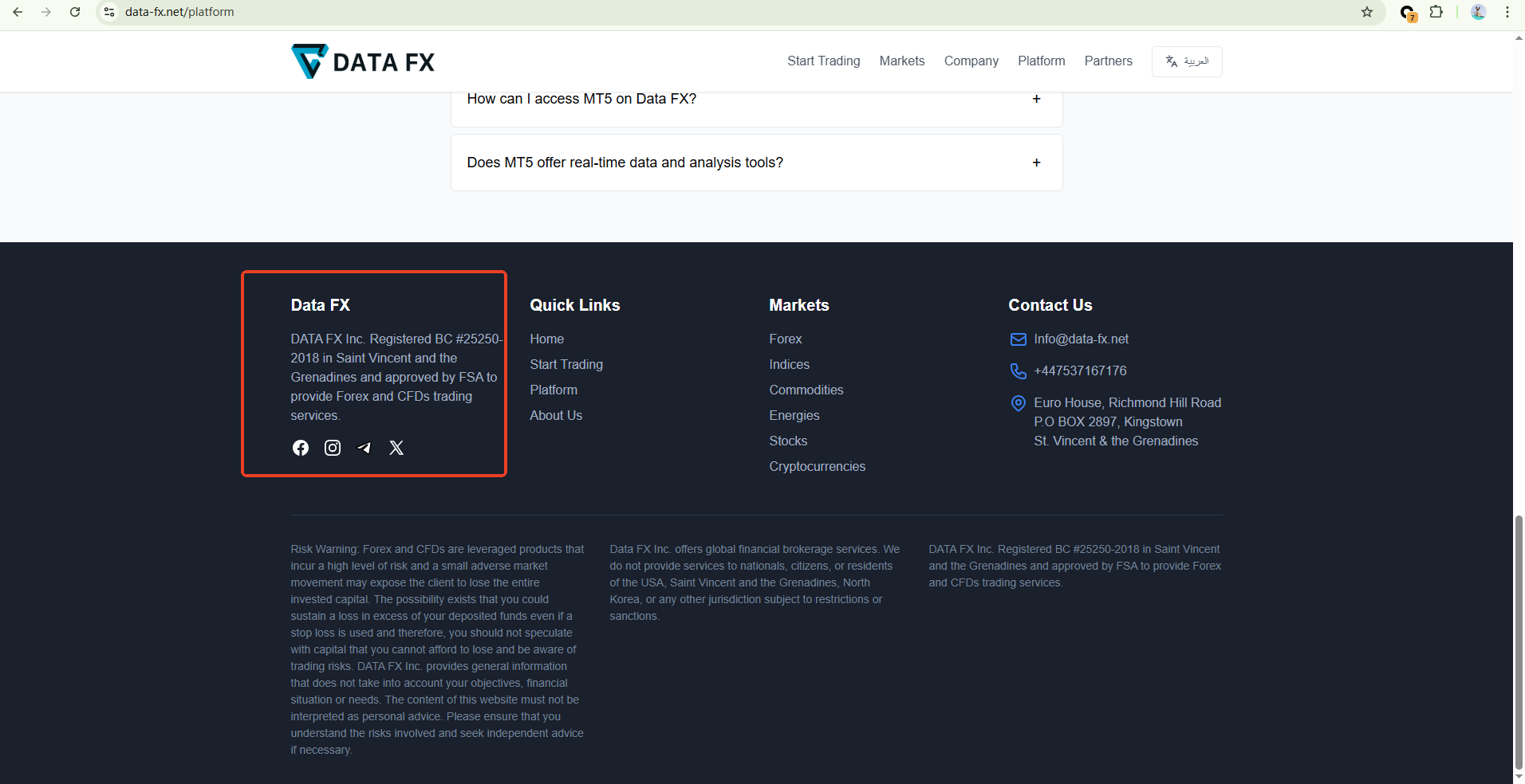 Data FX claims to operate under Data FX Inc., which is registered with the Financial Services Authority (FSA) of Saint Vincent and the Grenadines. While it is true that a company with this name appears in the SVG FSA registry, this registration only confers International Business Company (IBC) status and does not amount to a valid financial license. Notably, the SVG FSA has explicitly stated that it does not regulate or license foreign exchange brokers.