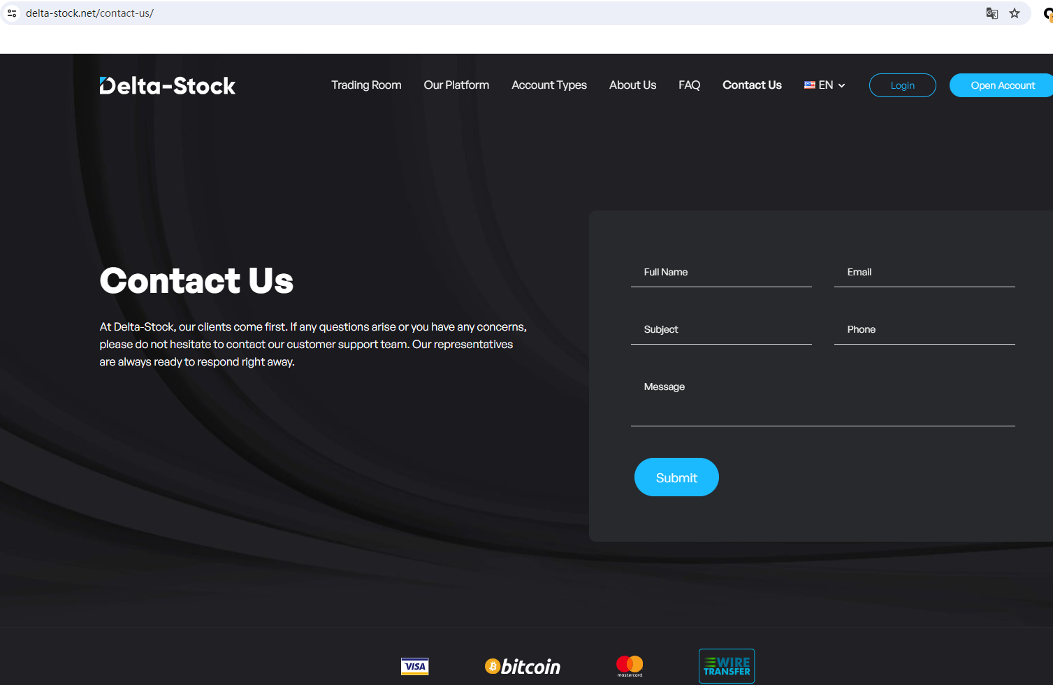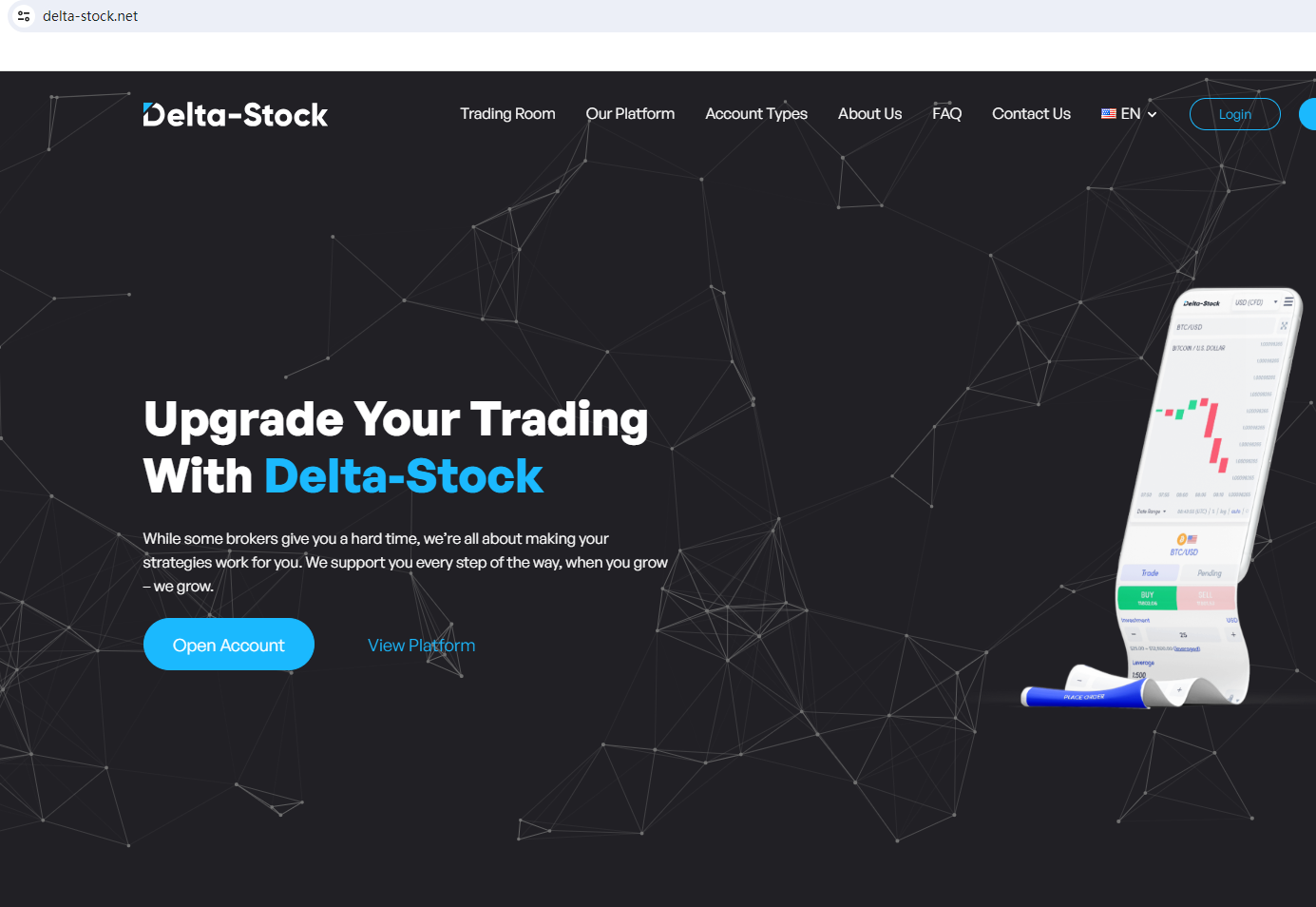 delta stock.net claims to be a reliable company without presenting any information about its regulation or contact. The lack of such important information may be a distinct signal of an unlicensed broker, as regulated companies always present their accreditations and licenses in a prominent position. It is a red flag.