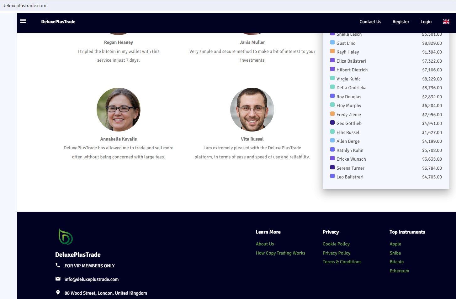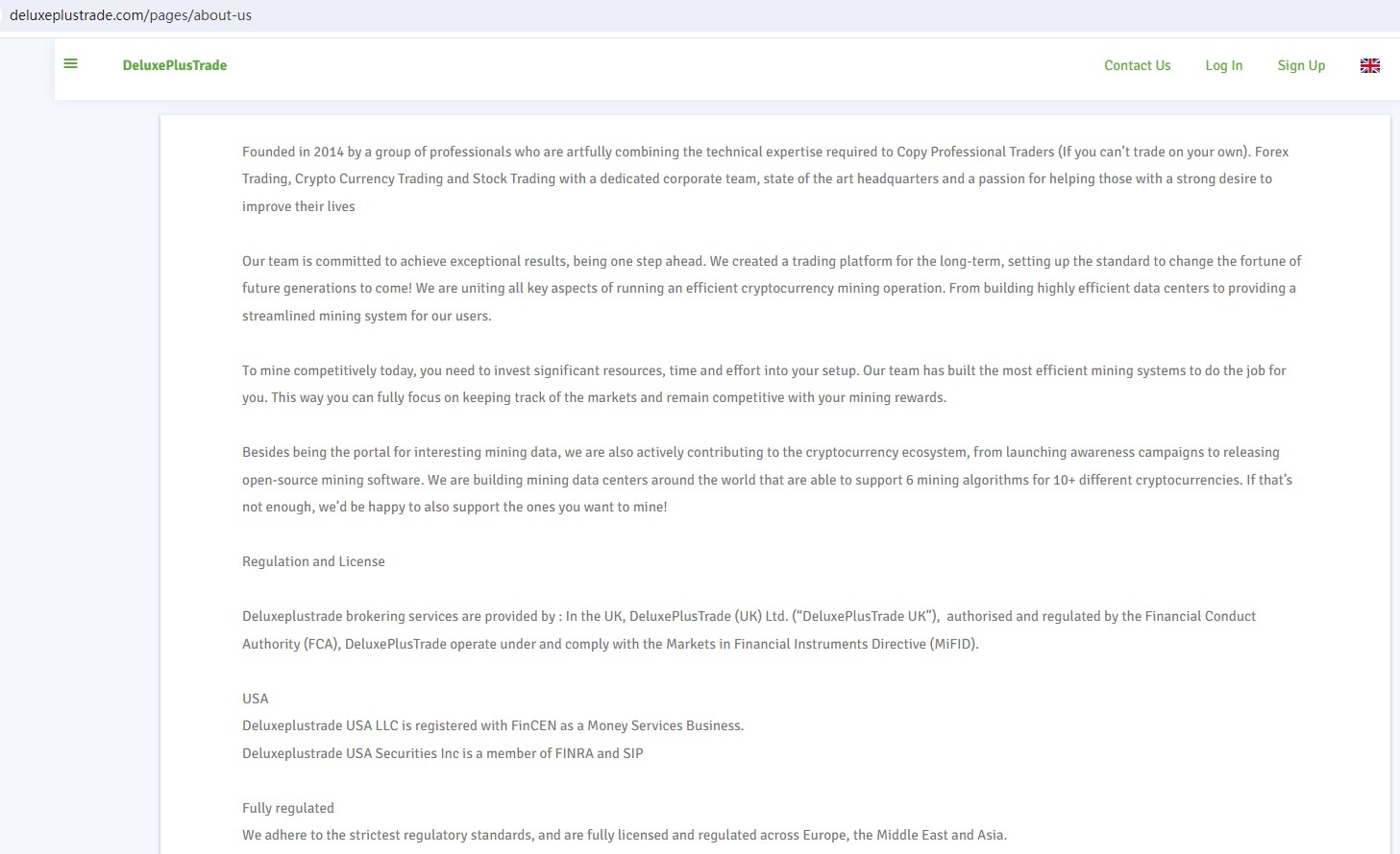 DeluxePlusTrade claims to be operated by DeluxePlusTrade (UK) Ltd, is a broker authorised and regulated by the United Kingdom Financial Conduct Authority (FCA). Deluxeplustrade USA LLC is registered with the U.S. Financial Crimes Enforcement Network(FinCEN) as a Money Services Business. Deluxeplustrade USA Securities Inc is a member of the U.S. Financial Industry Regulatory Authority (FINRA), offering wide range of financial services, including Crypto, Stocks, Forex and Options trading in global markets.