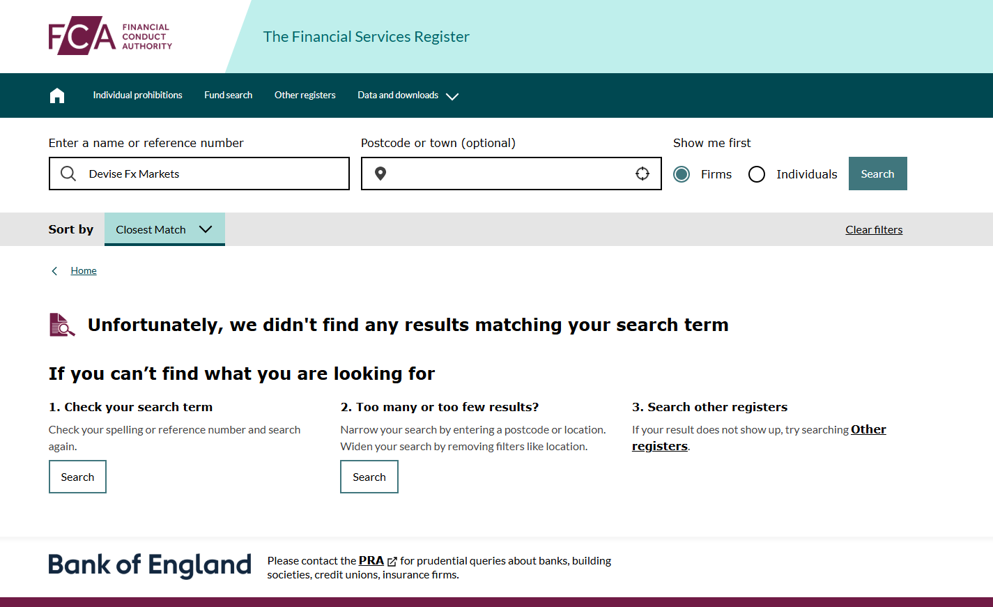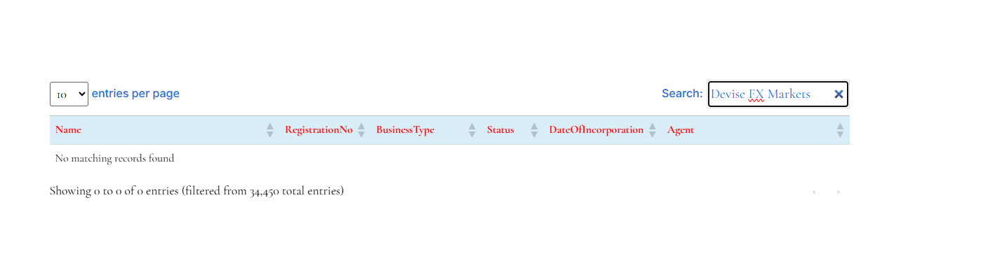 Additionally, Devise Fx Markets provides a company address in the United Kingdom, suggesting a possible UK presence. However, checks with the UK’s Financial Conduct Authority (FCA) show no record of the firm being authorized or listed. This further confirms that the entity operates without proper regulatory supervision in the UK.