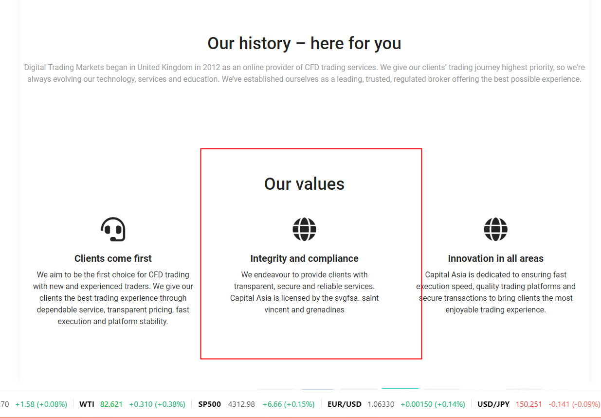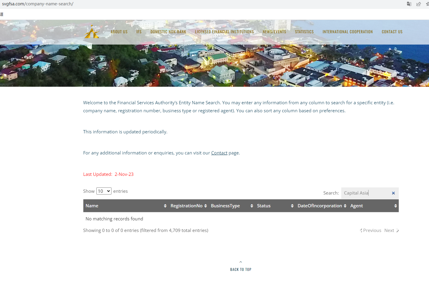 According to its website, it located in UK and St. Vincent & Grenadines, upon investigation, there is no matching information was found in the Financial Conduct Authority (FCA), Financial Services Authority (SVG FSA). In addition, it claims Capital Asia is licensed by SVG FSA, likewise, we didn't find any relevant information in the SVG FSA.
