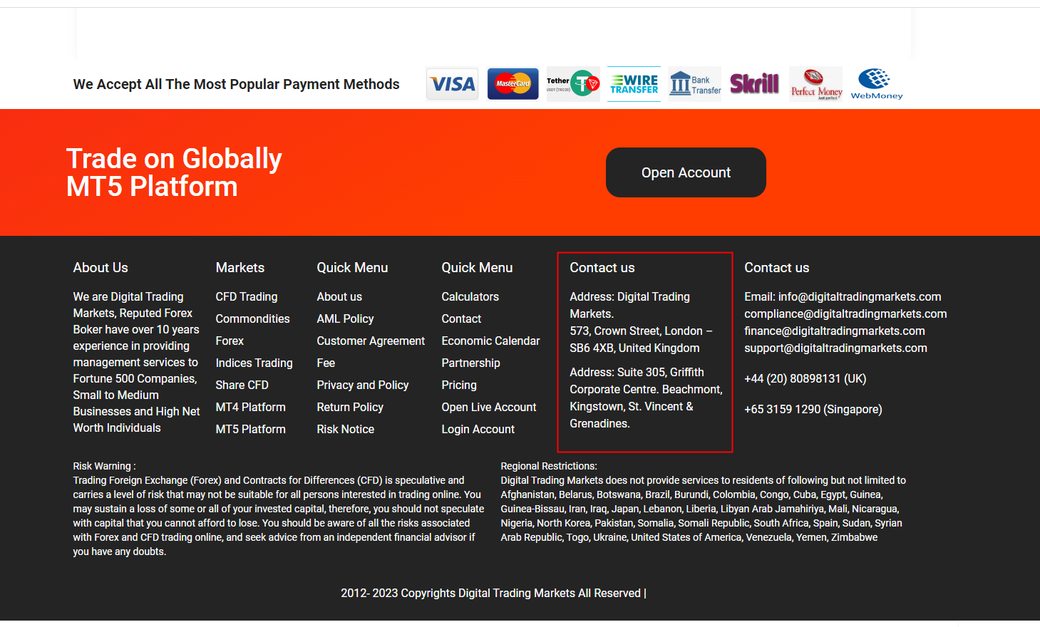 The truth is that Digital Trading Markets is not regulated by any regulators. Letting it hold or control investors' money is unsafe, and the money can not be protected by any laws.