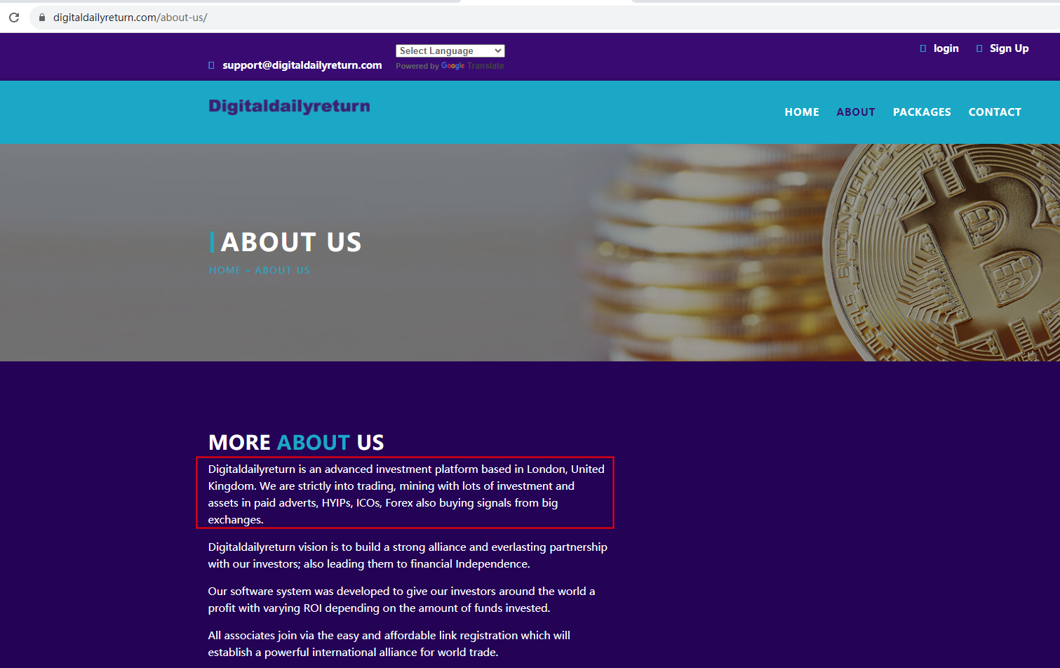 The truth is that Digitaldailyreturn is not regulated by any regulators. Letting it hold or control investors' money is unsafe,and the money can not be protected by any laws.