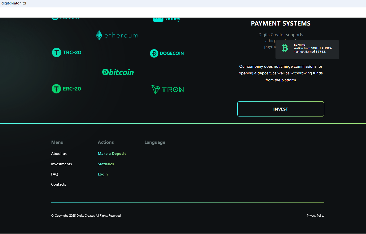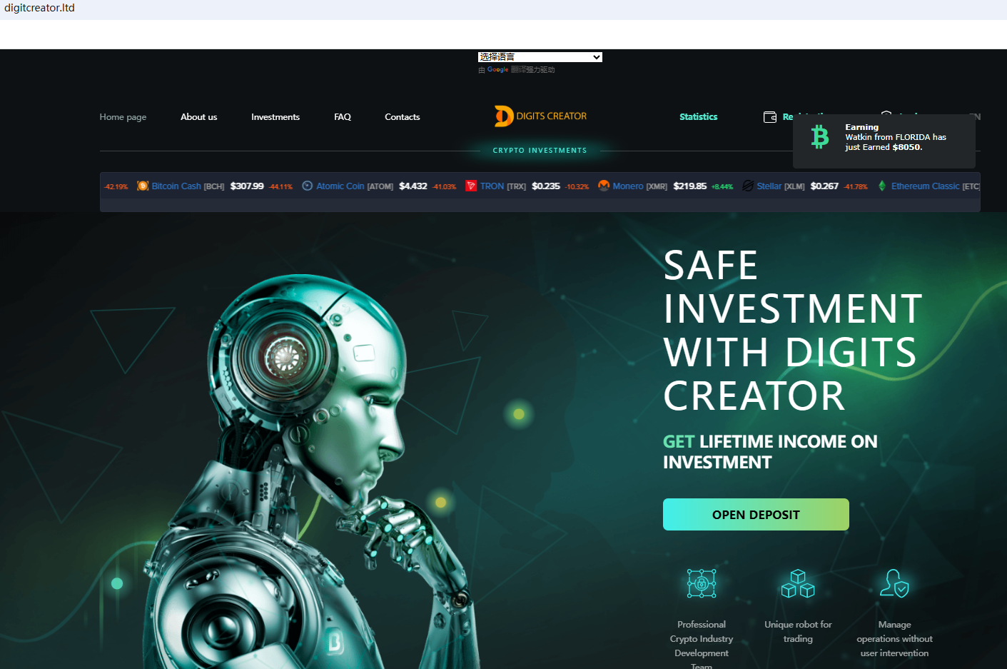 BrokersView found that the domain "https://digitcreator.ltd/" is currently inaccessible. This is widely regarded as a significant red flag, as the suspension of a broker's website often points to underlying regulatory or operational issues.