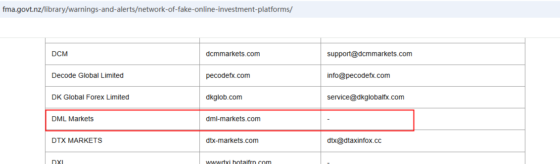 On February 17, 2025, the New Zealand Financial Markets Authority (NZ FMA) released a warning list, advising investors to stay vigilant about 96 suspicious investment websites including DML Markets. https://www.fma.govt.nz/library/warnings-and-alerts/network-of-fake-online-investment-platforms/