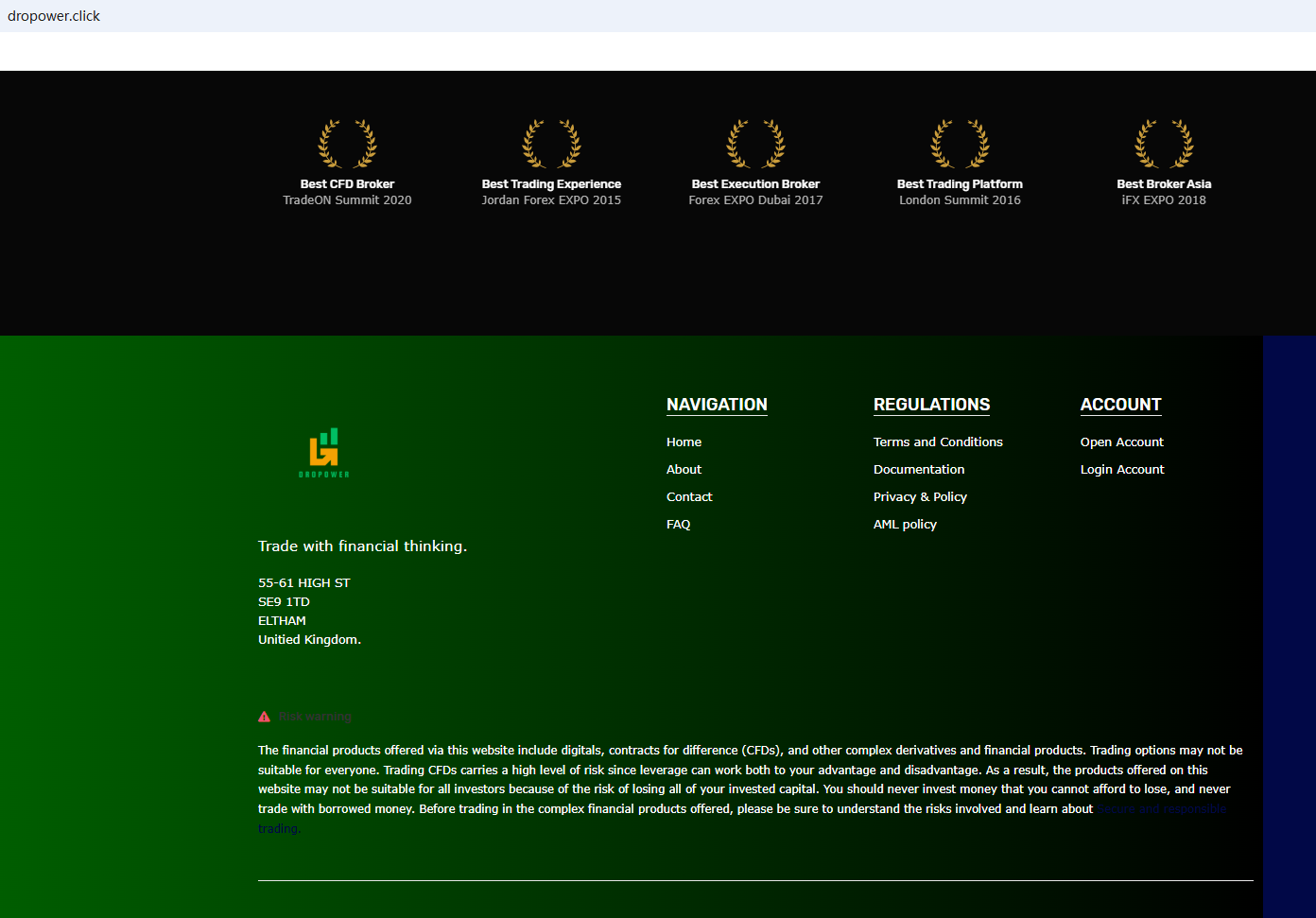 DROPOWER.CLICK claims to be a compliant company and is regulated by the Financial Conduct Authority (FCA). The funny thing is that we found that the FCA has issued a warning regarding DROPOWER.CLICK, suspecting that this company may be offering financial services or products without the necessary authorization.