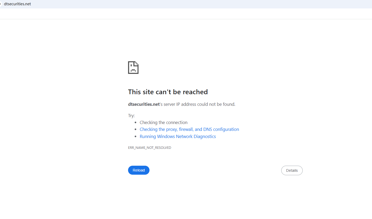 BrokersView found that the domain "https://dtsecurities.net/" is currently inaccessible. This is widely regarded as a significant red flag, as the suspension of a broker's website often points to underlying regulatory or operational issues.