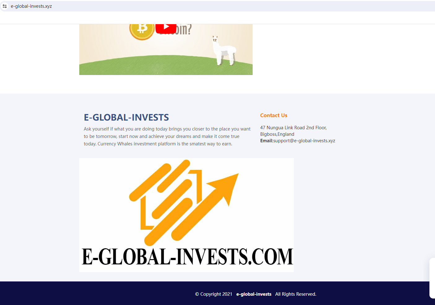 According to its website, it is located in England. Upon investigation, we found that the United Kingdom Financial Conduct Authority (UK FCA) issued a warning that e global invests was providing financial services or products in the UK without authorisation.