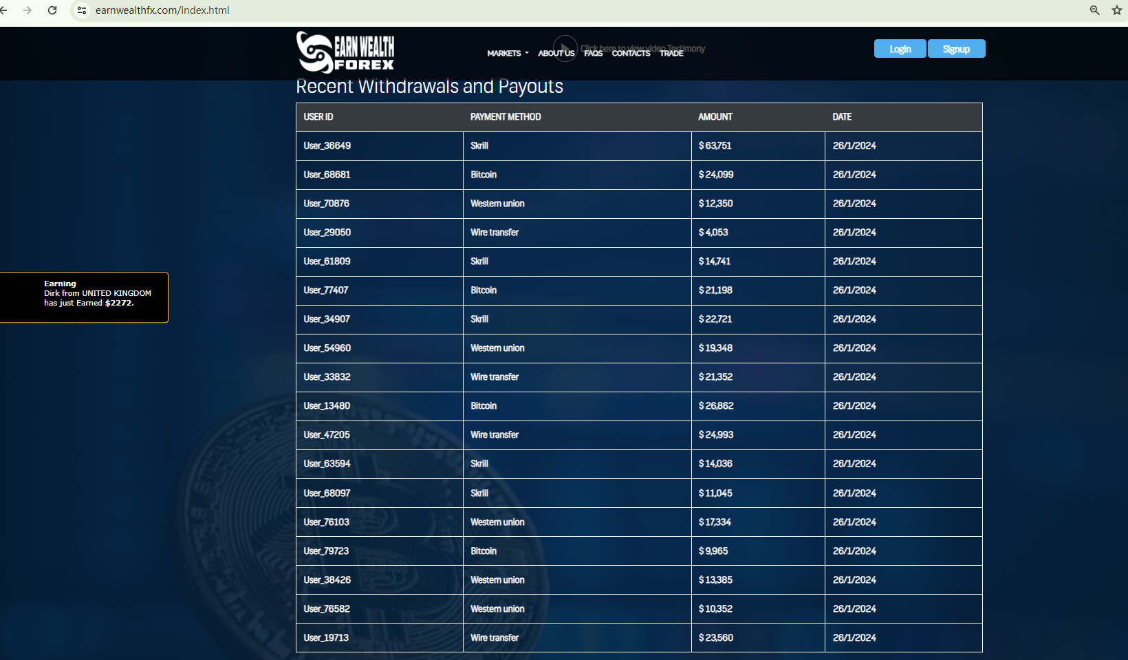EARN WEALTH FX appears to be a scam.