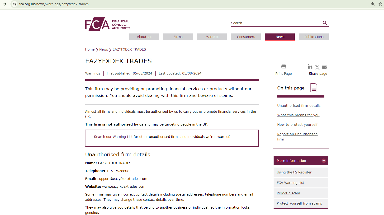 On August 5 2024, the Financial Conduct Authority (FCA) issued a warning against Eazyfxdex Trades, believing this company might be providing financial services or products without proper authorization in the UK. https://www.fca.org.uk/news/warnings/eazyfxdex-trades