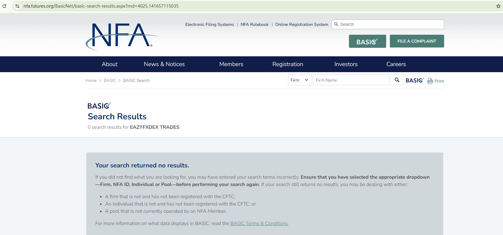 However, the FCA has issued a warning against Eazyfxdex Trades, refuting its claim of being authorized by them. Consequently, the asserted relationship between Eazyfxdex Trades and Forex.com is also false. Additionally, the US business license is evidently photoshopped. A search in the National Futures Association (NFA) register yielded no matching records to substantiate the broker's legitimacy.