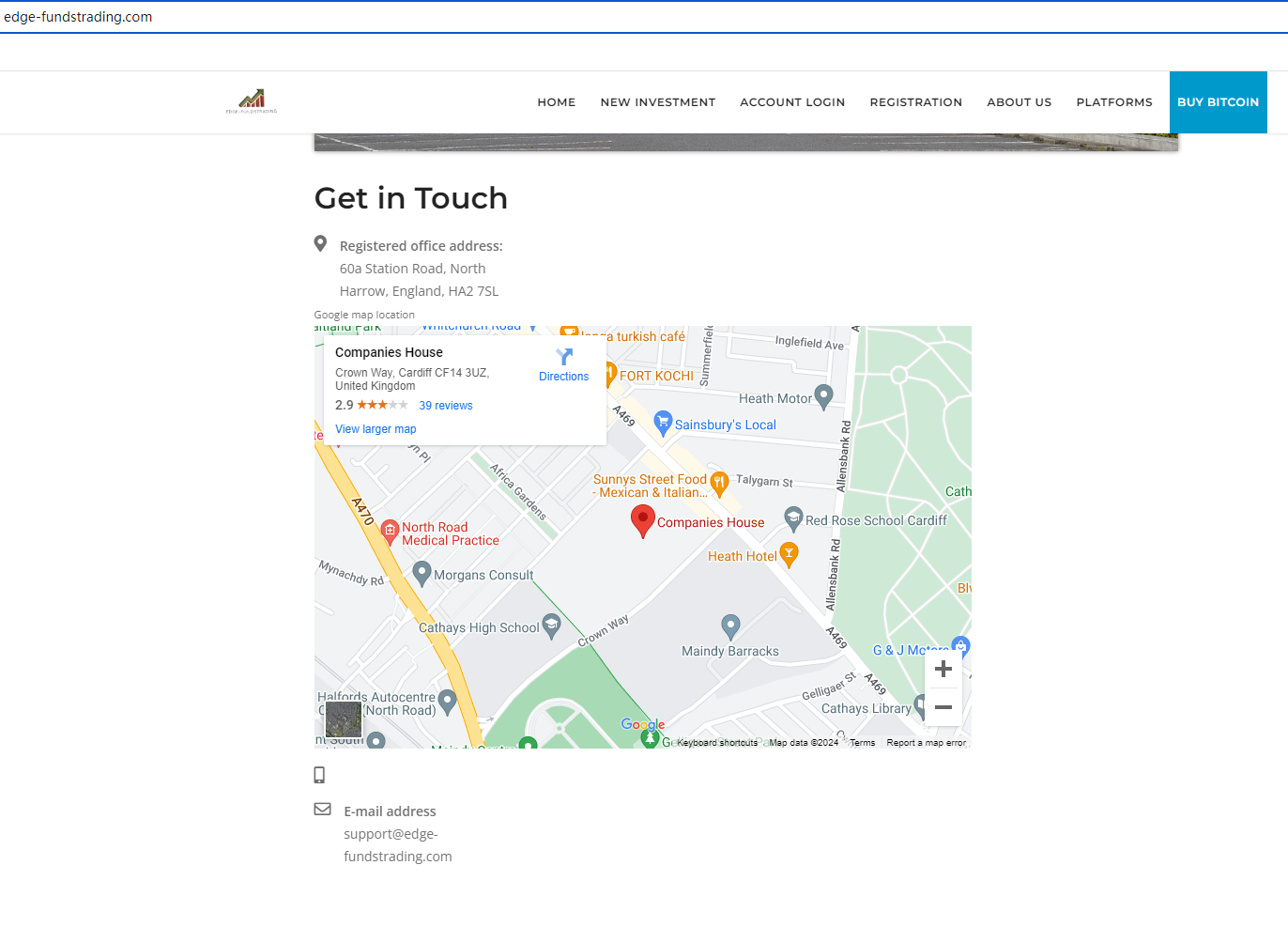 The website template used by EDGE FUNDSTRADING is often associated with fraudulent activities. It claims to be EDGE FUNDSTRADING, but the registered address is the same as the registered address of the scam ONLINE EXPERT TRADERS previously flagged by Brokersview. And, it is important to emphasize that many fraudsters using this template falsely claim to have a partnership with the London Stock Exchange, and this claim is often included in the template content.
