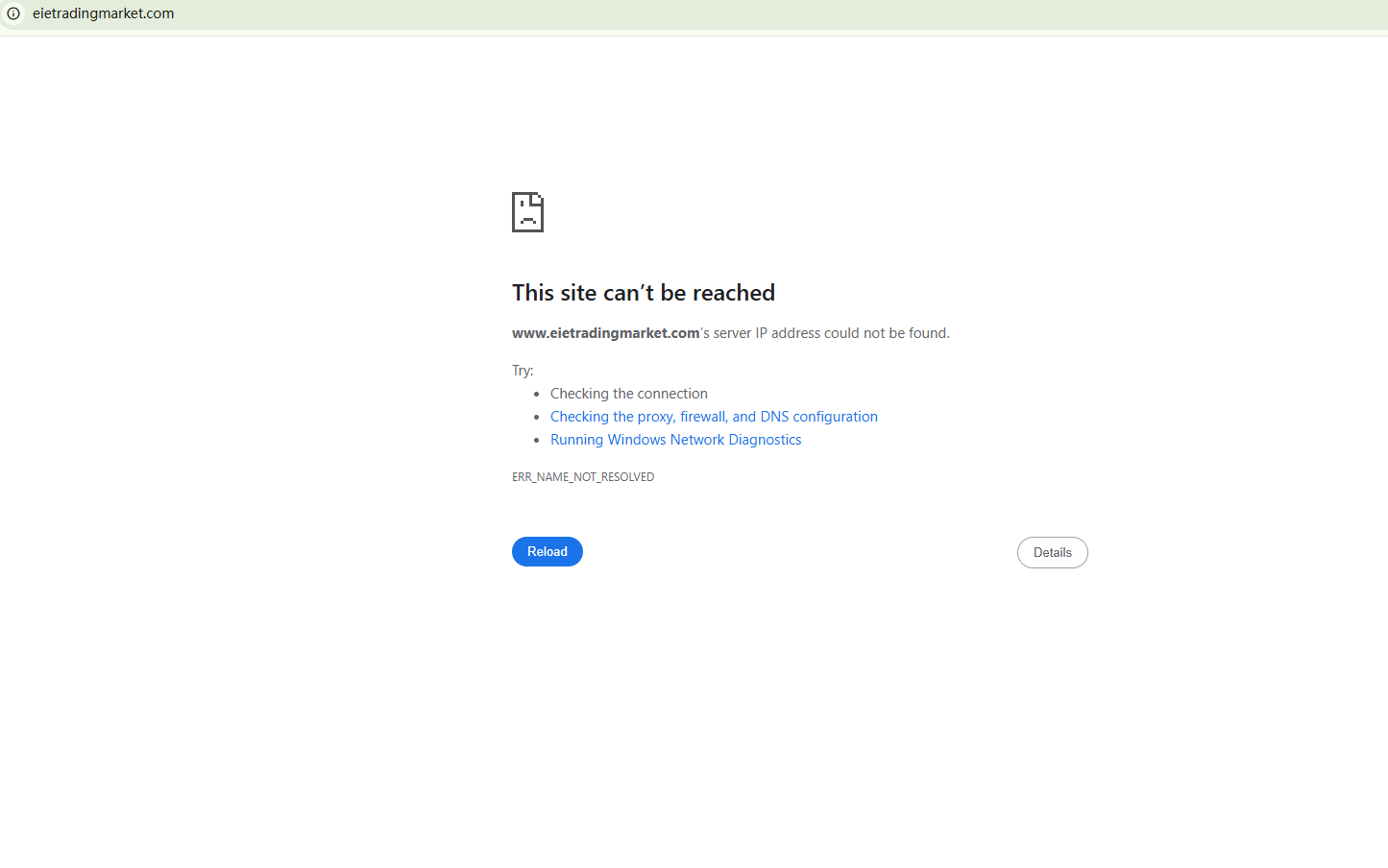 BrokersView found that the domain "https://www.eietradingmarket.com/; https://eietradingmarket.com/" are currently inaccessible. This is widely regarded as a significant red flag, as the suspension of a broker's website often points to underlying regulatory or operational issues.