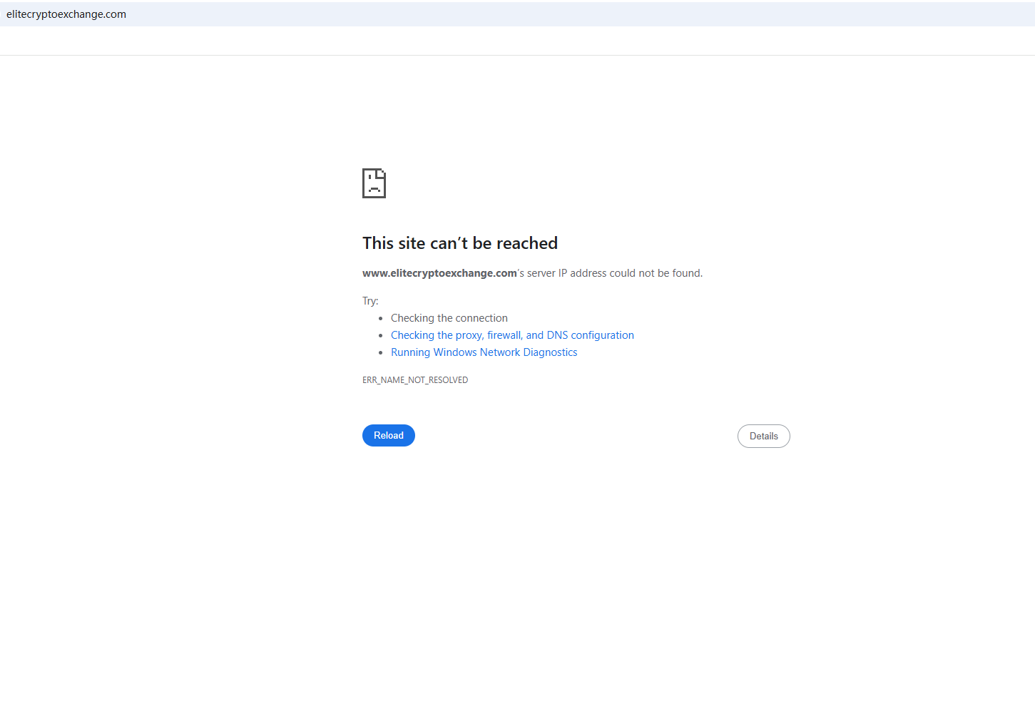 BrokersView found that the domain "elitecryptoexchange.com" is currently inaccessible. This is widely regarded as a significant red flag, as the suspension of a broker's website often points to underlying regulatory or operational issues.