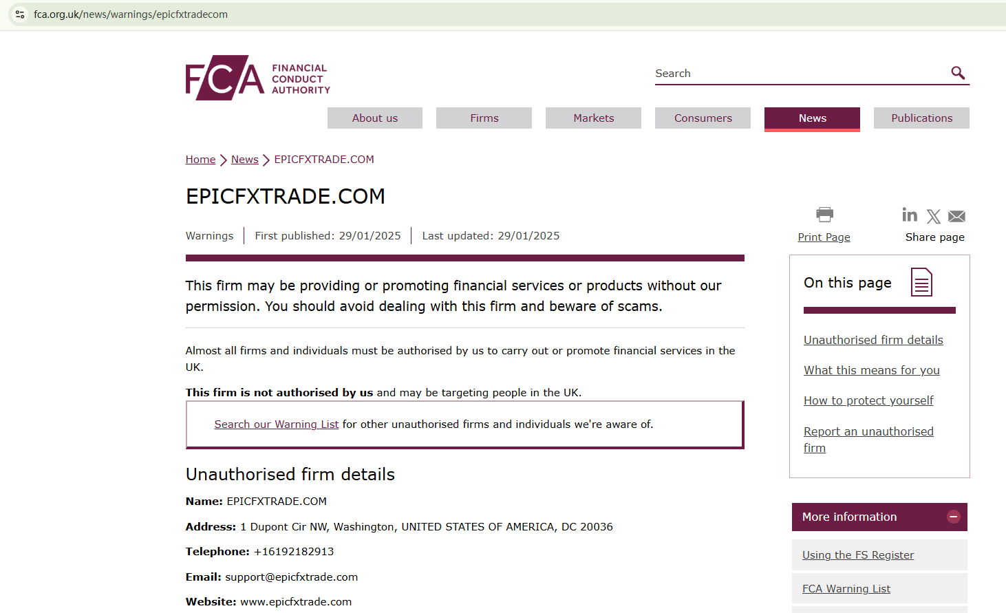 EPIC FX TRADES' website is filled with self-boasting claims. The broker promises unrealistic profits to lure unsuspecting investors and falsely claims to have membership of the National Futures Association (NFA) under number 03677678. However, verification suggests that this number does not exist on the NFA register. Additionally, the Financial Conduct Authority (FCA) has flagged EPIC FX TRADES as an unauthorized firm.