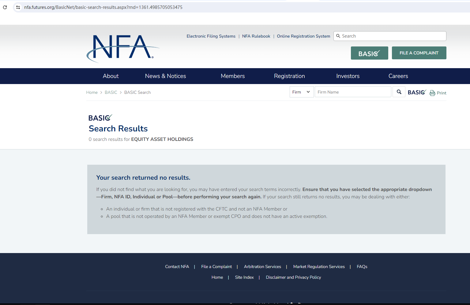 Scam websites often exhibit certain common characteristics. They typically have a short lifespan, disappearing once the fraudulent activity is detected, then reappearing under a different brand and URL. These websites are often hastily put together, and fraudsters often utilize basic Forex broker website templates to carry out their scams. They simply replace existing brand names in the content with their own, often neglecting to ensure grammatical accuracy or logical consistency. Most scam sites don’t even change regulatory information. Equity Asset Holdings is a prime example of this type of fraud ring. It uses the same website template as ApexFinancialTrading (https://www.brokersview.com/brokers/apexfinancialtrading), a scam previously exposed by BrokersView. After careful comparison, I found that the addresses given were different. After checking, no matching information was found in the National Futures Association (NFA).