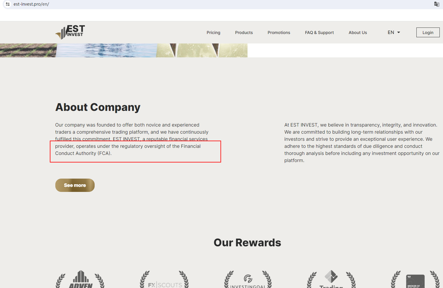 According to its website, it claims to be regulated by the Financial Conduct Authority (FCA). After inquiry, we found that the United Kingdom Financial Conduct Authority (UK FCA) issued a warning that EST INVEST was providing financial services or products in the UK without authorisation.