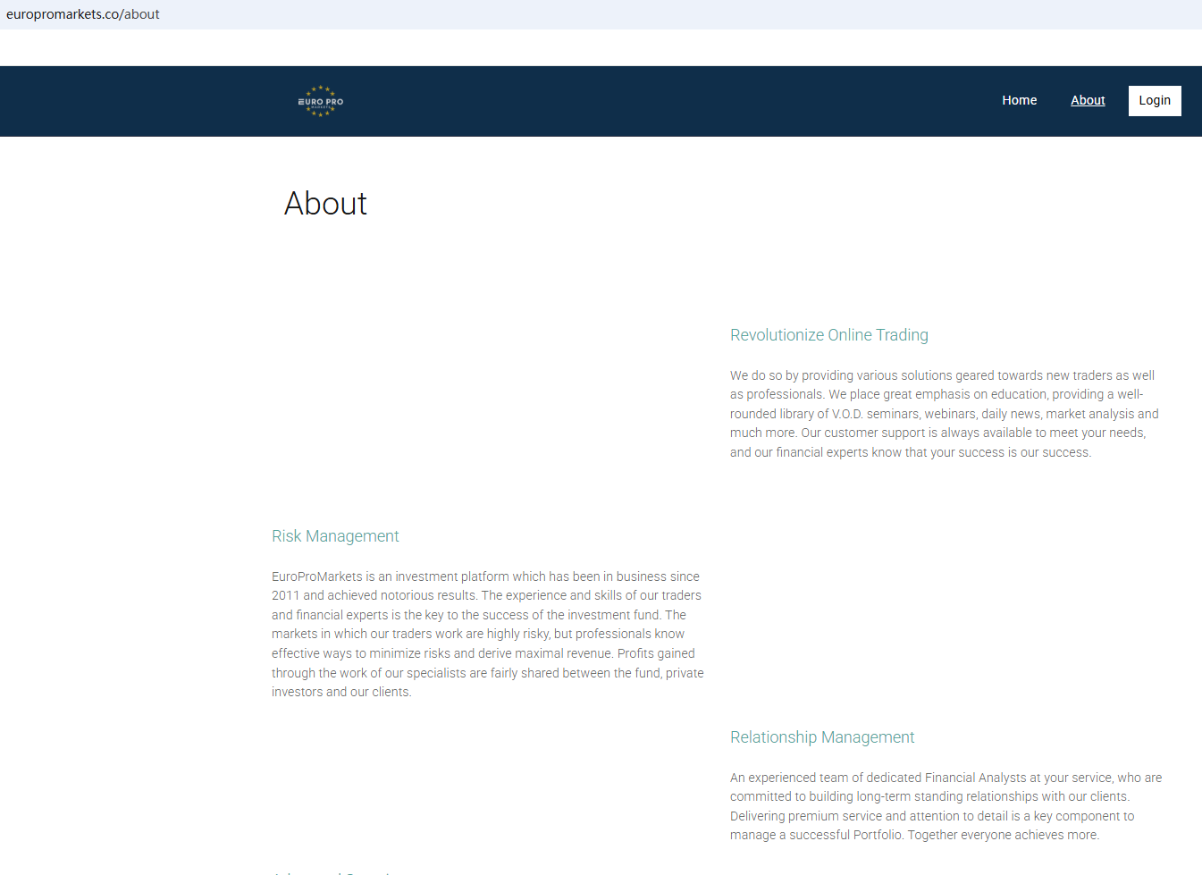 In essence, Euro Pro Markets is not regulated by any governing body. Entrusting it with investors' funds is highly risky, as there are no legal protections in place to safeguard the funds. Euro Pro Markets appears to be a scam.
