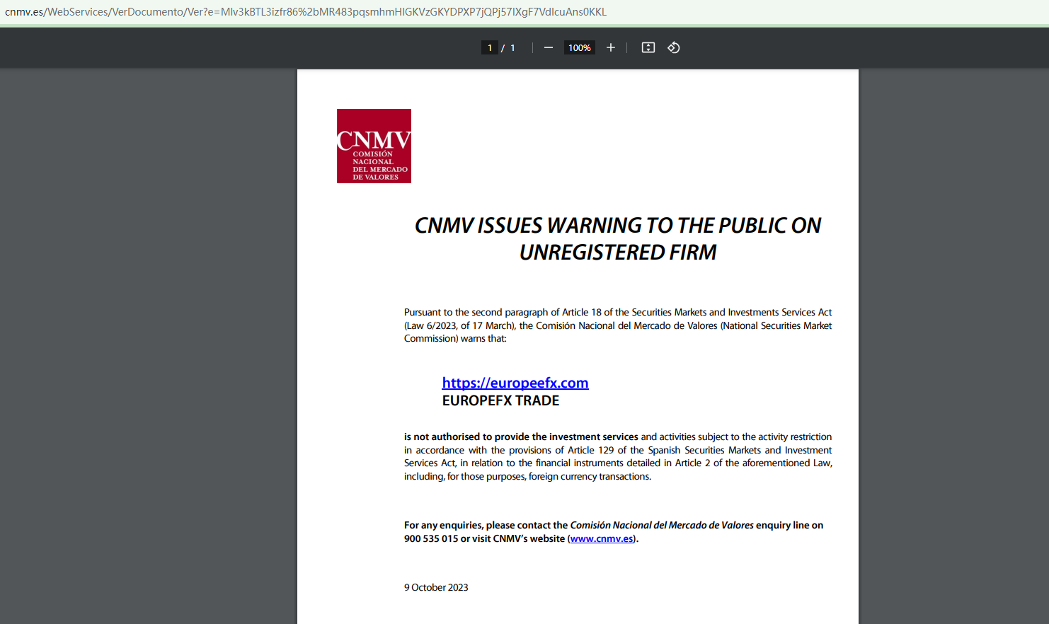 Furthermore, the Comisión Nacional del Mercado de Valores (CNMV) has added EuropeFx Trade to its warning list for providing investment services without authorization.
