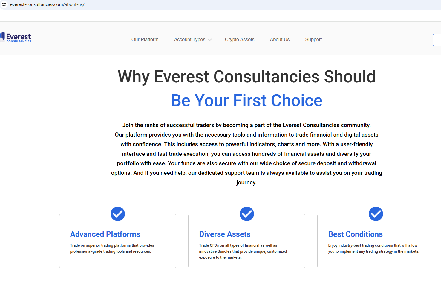 In essence, Everest Consultancies is not regulated by any governing body. Entrusting it with investors' funds is highly risky, as there are no legal protections in place to safeguard the funds. Everest Consultancies appears to be a scam.
