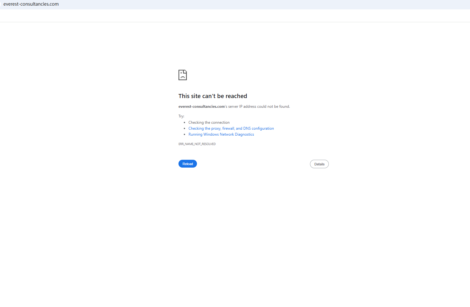 BrokersView found that the domain "Everest Consultancies" is currently inaccessible. This is widely regarded as a significant red flag, as the suspension of a broker's website often points to underlying regulatory or operational issues.