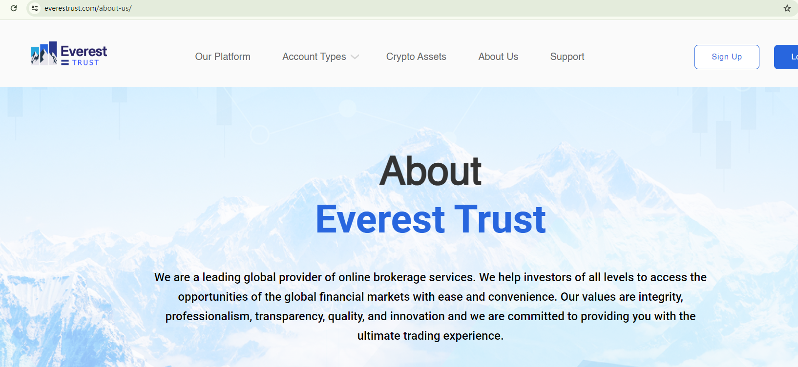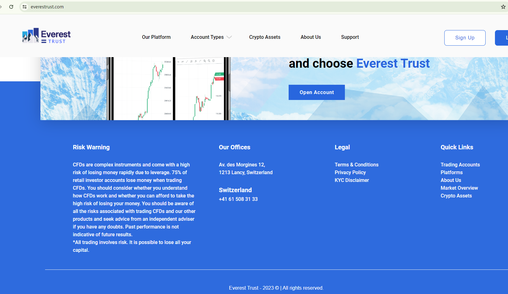 Everest Trust, despite its attempts to build credibility through exaggerated language, seems to be falling short in practice. The broker's website lacks any regulatory information that would validate its legitimacy, raising red flags about its operations.
