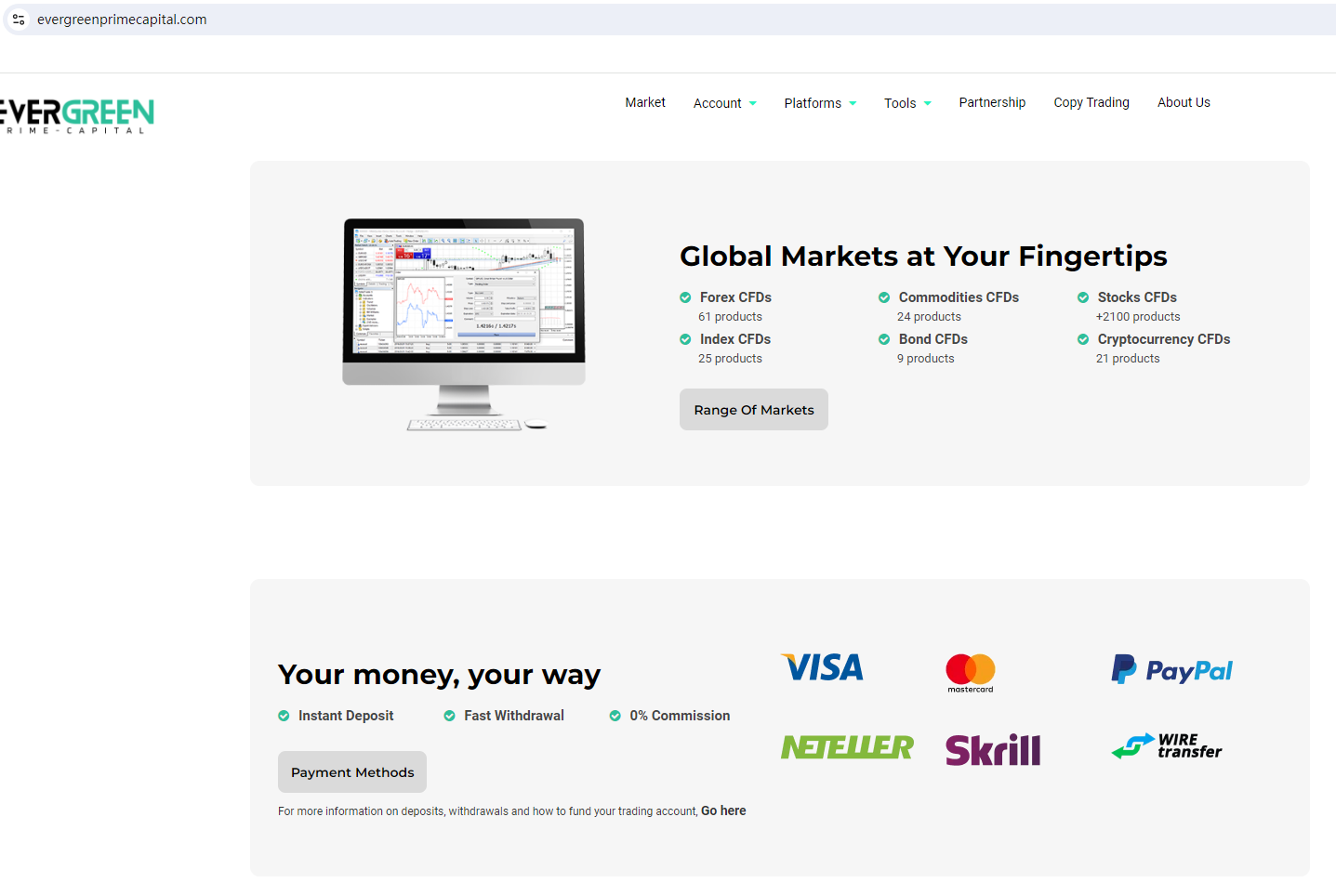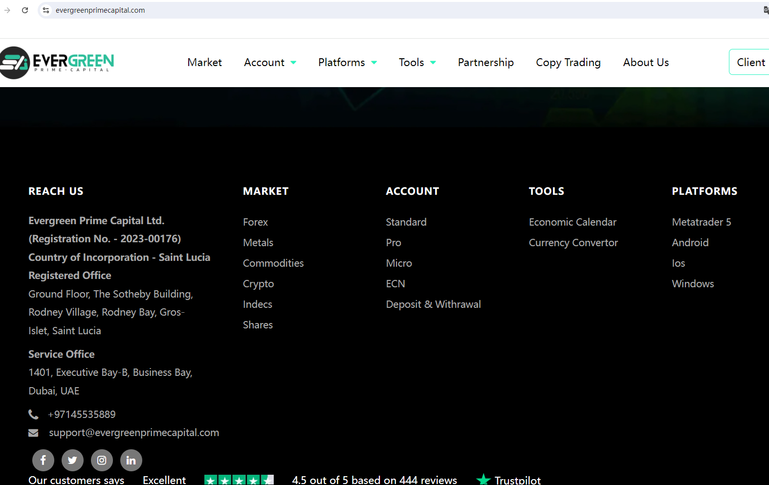 Evergreen Prime Capital claims to be registered in St. Lucia, promoting this registration as proof of its legitimacy. However, forex trading activities are not licensed in St. Lucia.