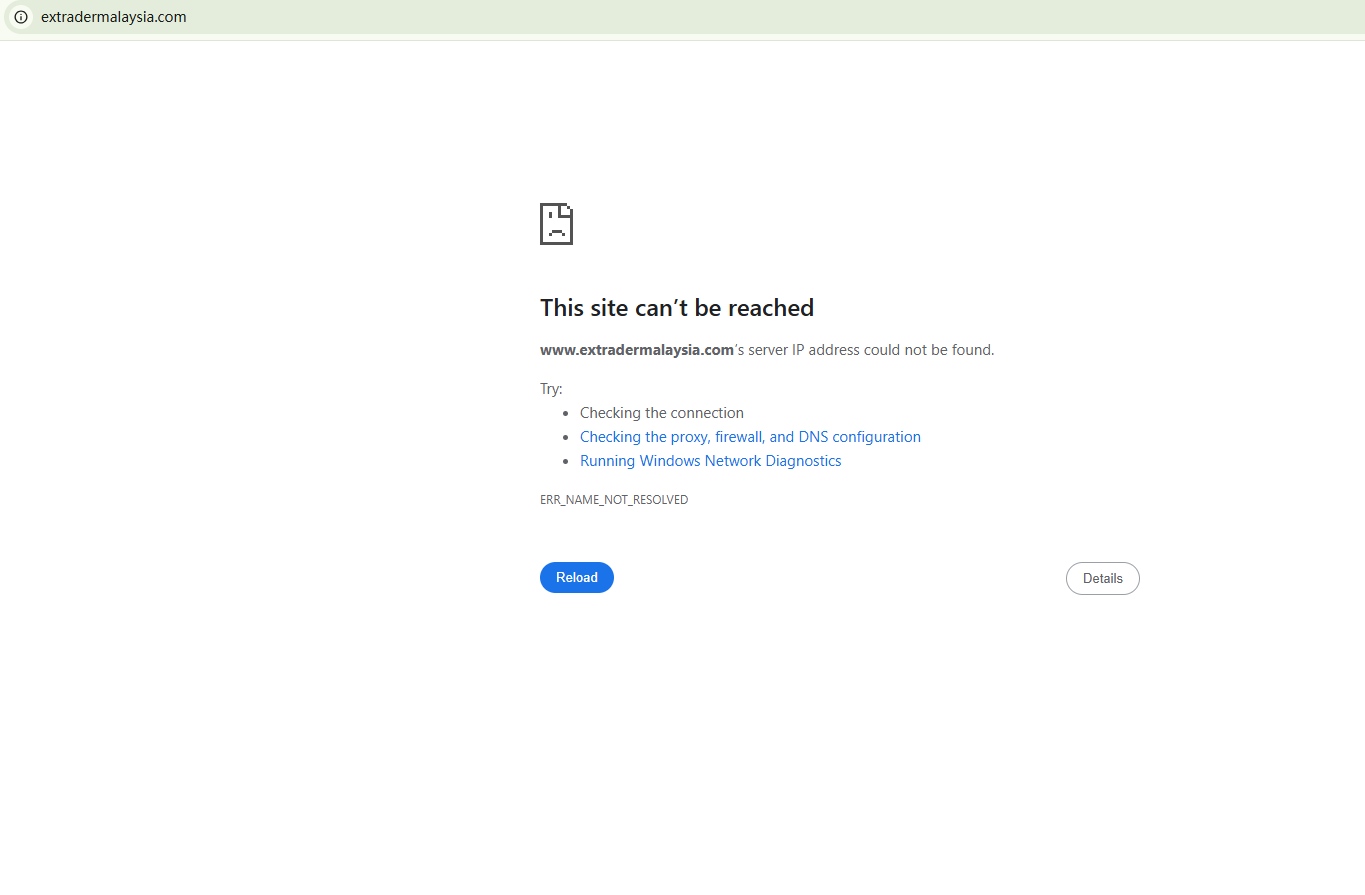 BrokersView found that the domain "https://www.extradermalaysia.com/" is currently inaccessible. This is widely regarded as a significant red flag, as the suspension of a broker's website often points to underlying regulatory or operational issues.