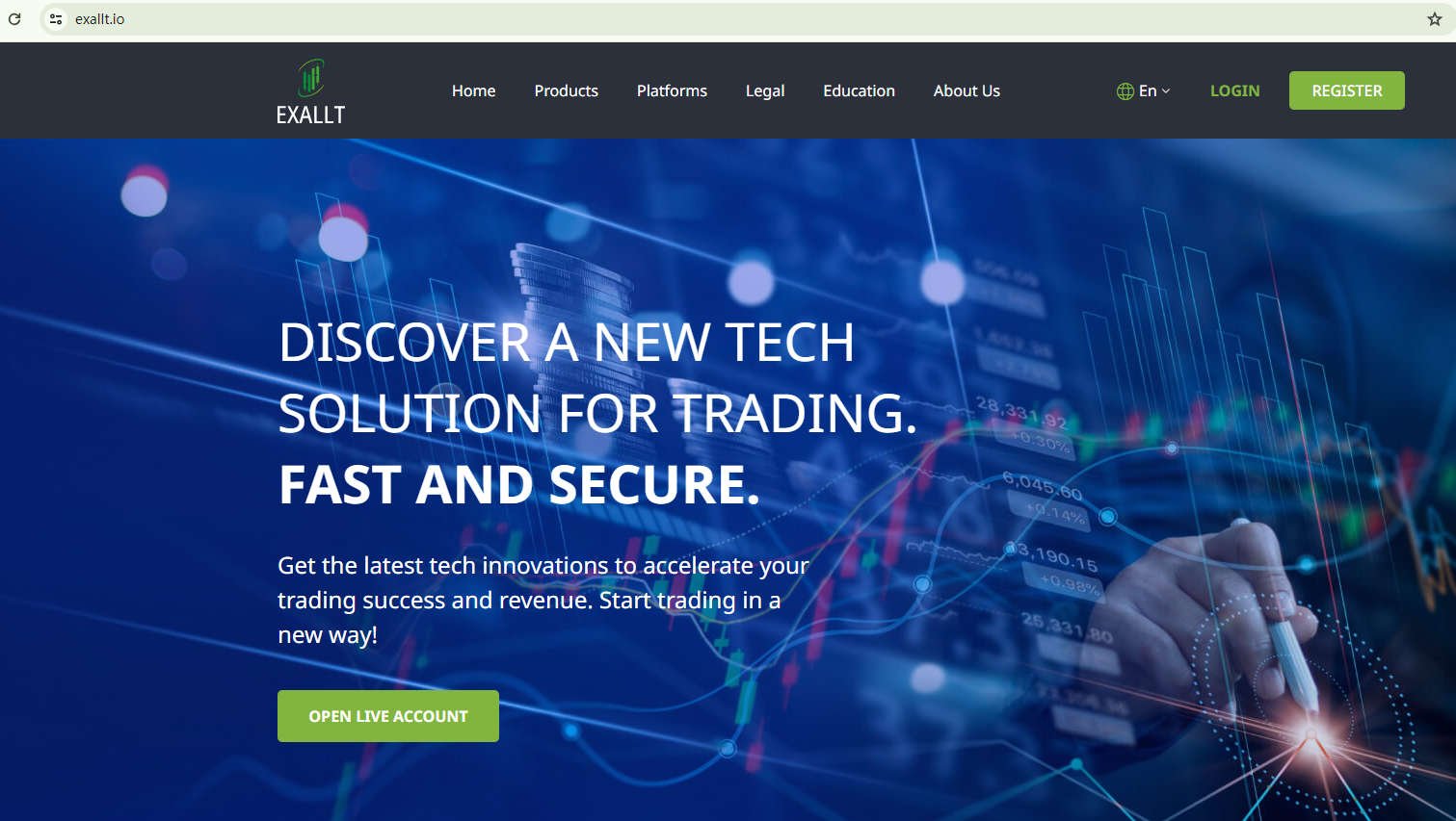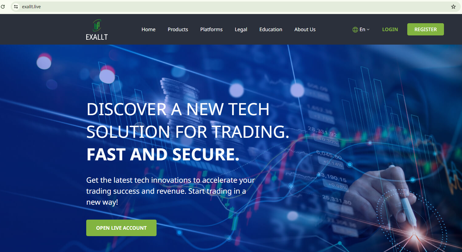 Exallt claims to be the trading name of Fluxlogy LLC, a company providing financial services via two web addresses, https://www.exallt.io/ and https://www.exallt.live/. The company purports to be registered with the Financial Services Authority of St. Vincent and the Grenadines (SVG FSA) under Reg number 2255LLC2022. However, according to the SVG FSA, this registration is in the process of being cancelled. Even if the registration were valid, this entity would still be unlicensed as its forex trading brokerage services are not licensed by the SVG FSA.